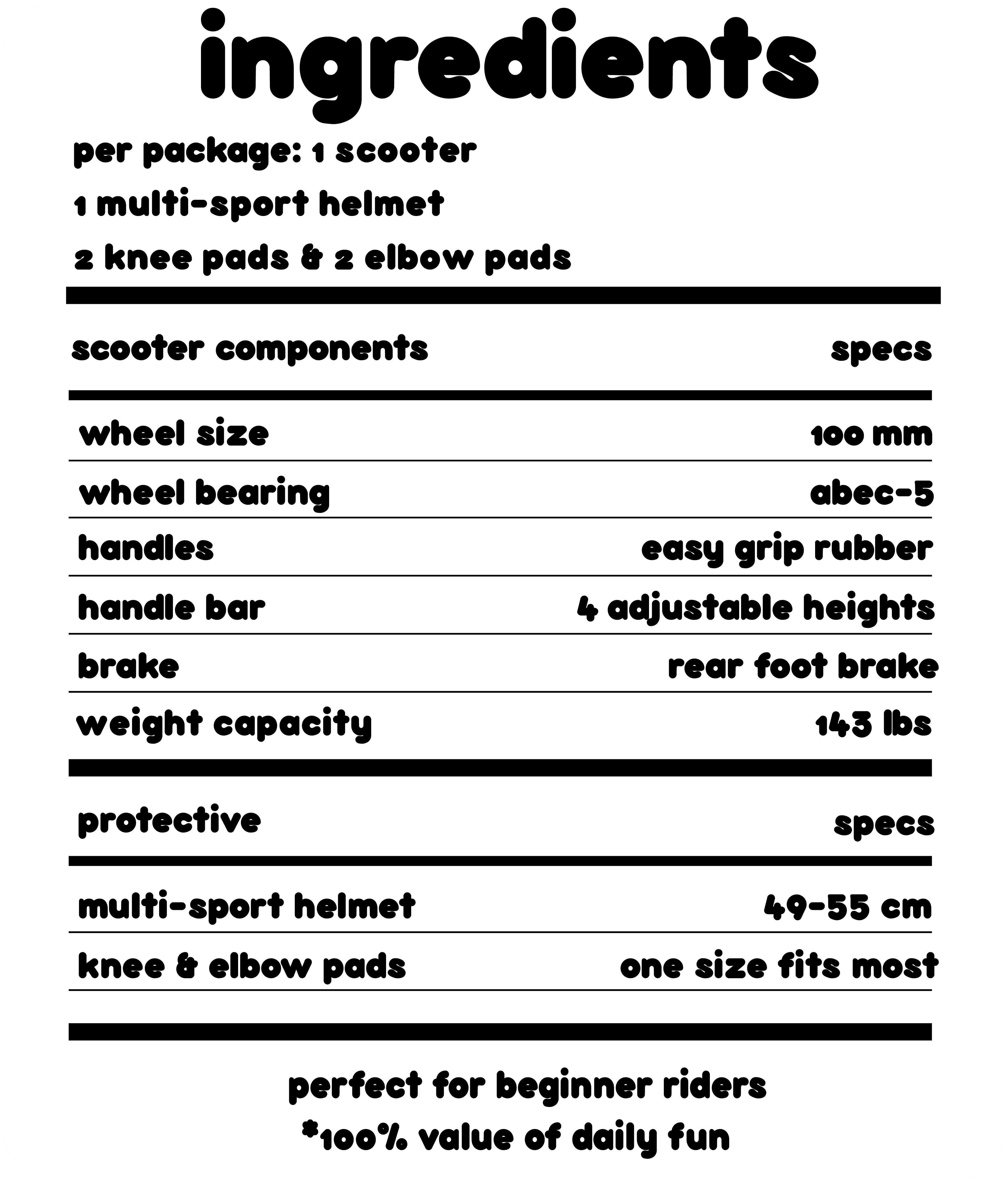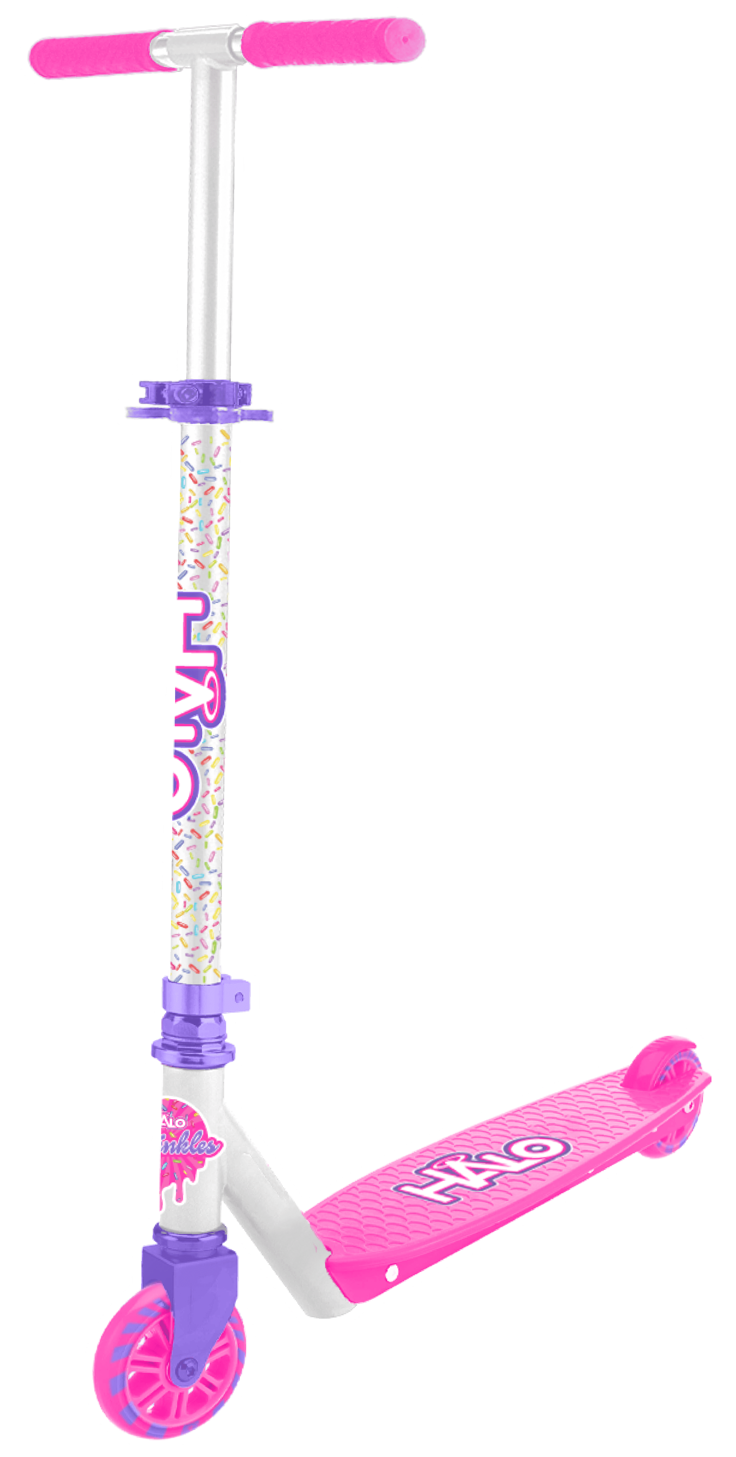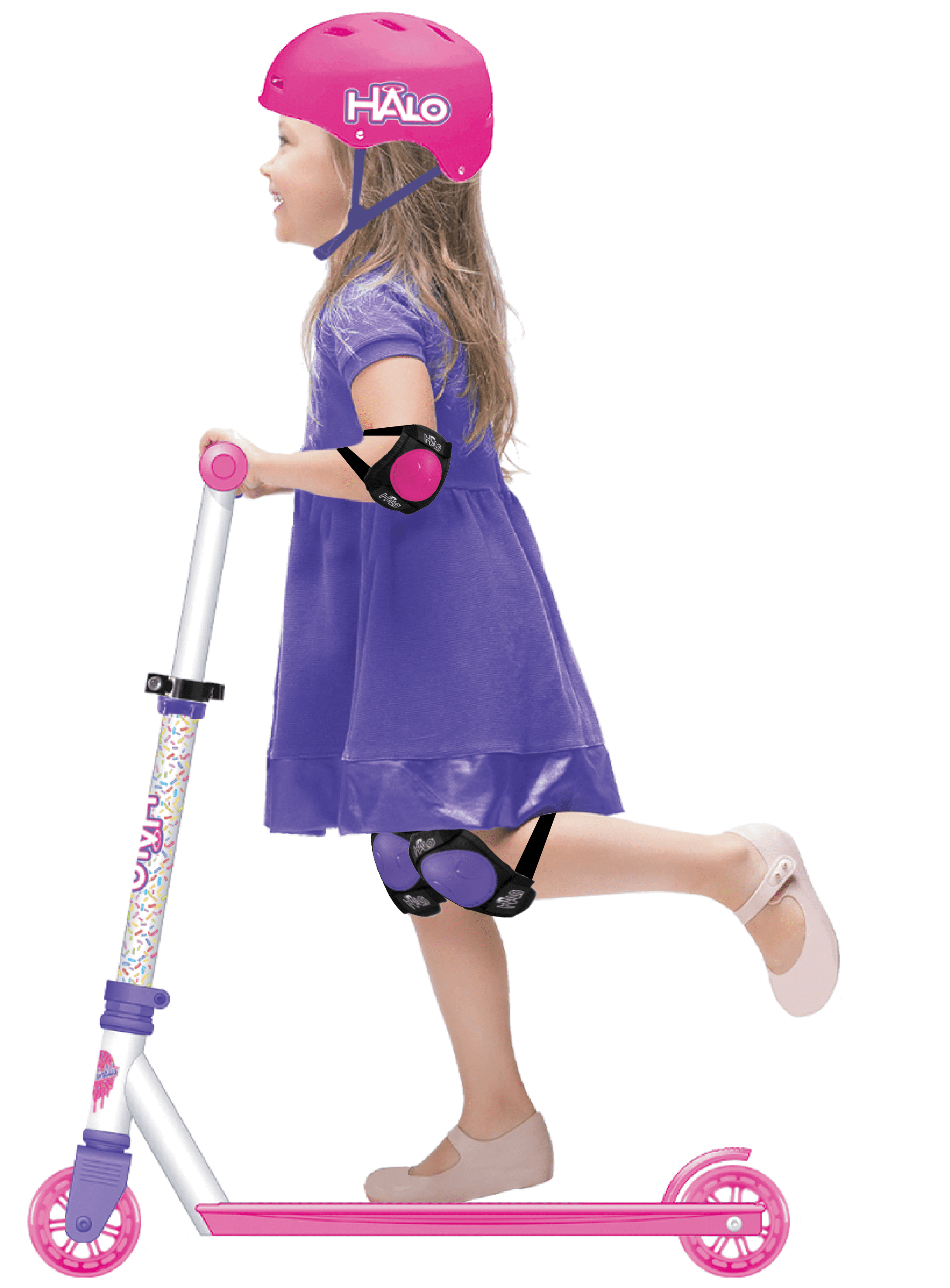 HALO Rise Above 2 Wheel Scooter Combo Set – Pink and Purple Sweets Style! HALO Sweets Combo Set Includes 1 foldable 2 wheel Scooter with 143lbs maximum rider weight and height adjustable easy grip rubber handles! This amazing combo set also includes 1 Pink Multi-sport style, size adjustable protective helmet, 1 set of knee pads with purple shells and 1 set of elbow pads with pink shells! A complete, all-in-one set, sesigned for all riders, boys and girls (unisex). A perfect gift set for Easter that includes everything you need for an awesome and safe ride! Looking for an amazing gift for anyone 3-12 years old? This set will make either give your child an all in one set that includes all protective great or make you a rock star with a child’s parent or guardian by giving a gift that includes all of these products to a child!