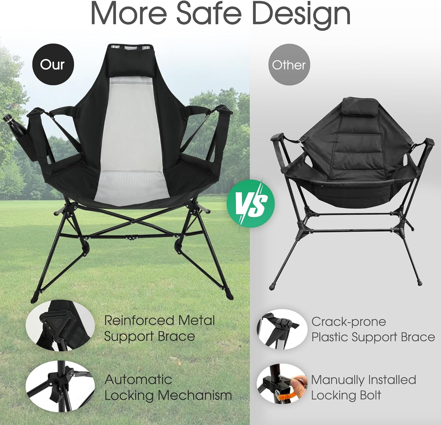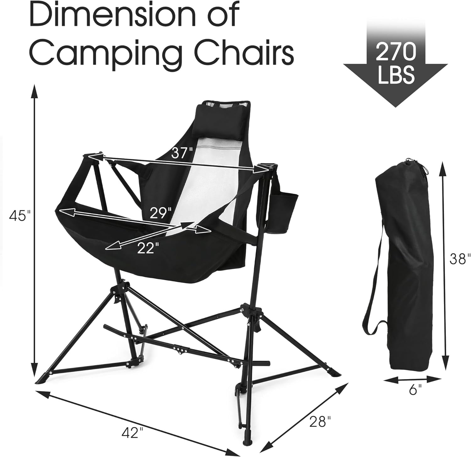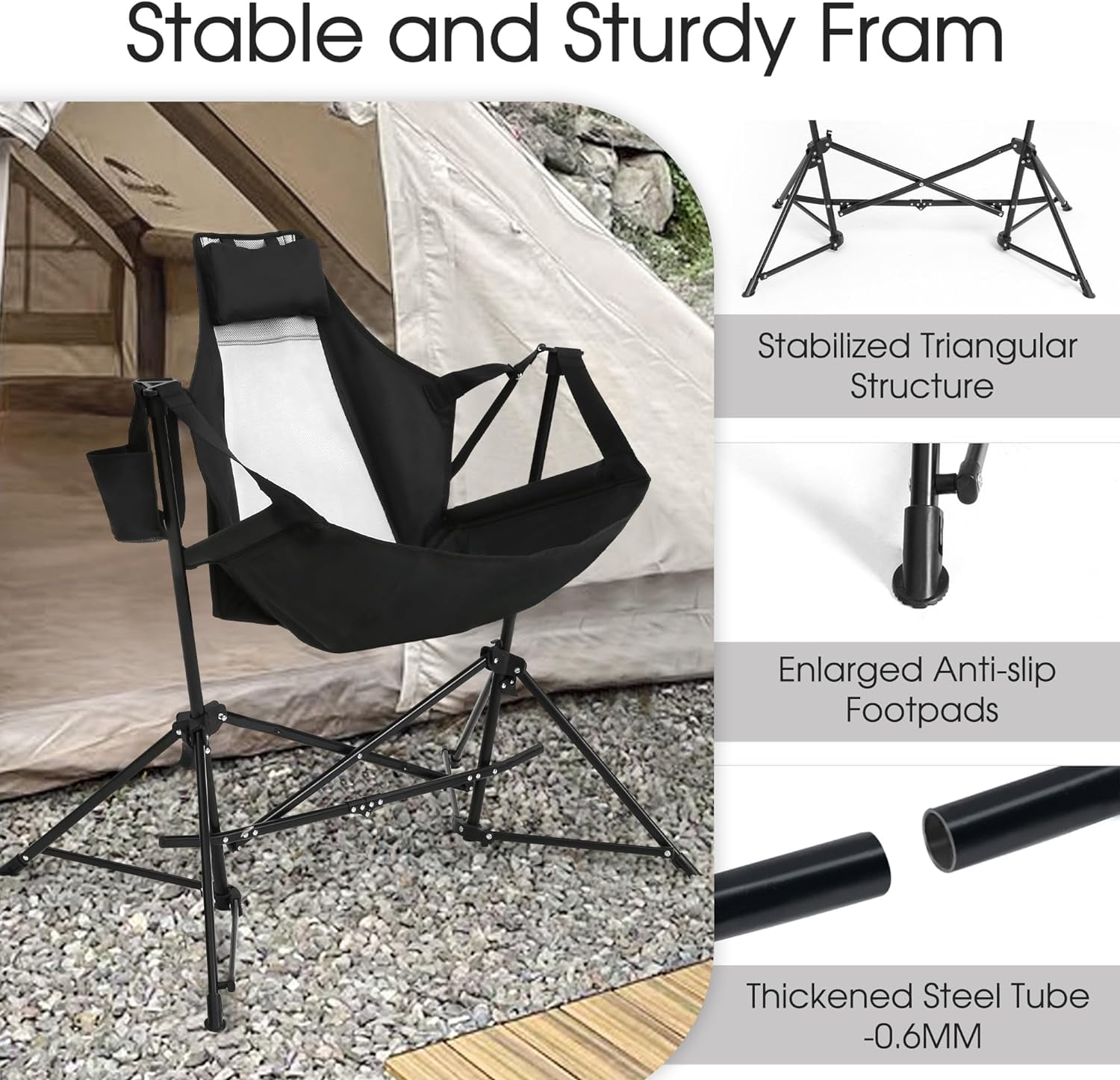 Villeston Hammock Camping Chair – Folding Portable Aluminum Alloy with Pillow Cup Holder for Outdoor Travel Black