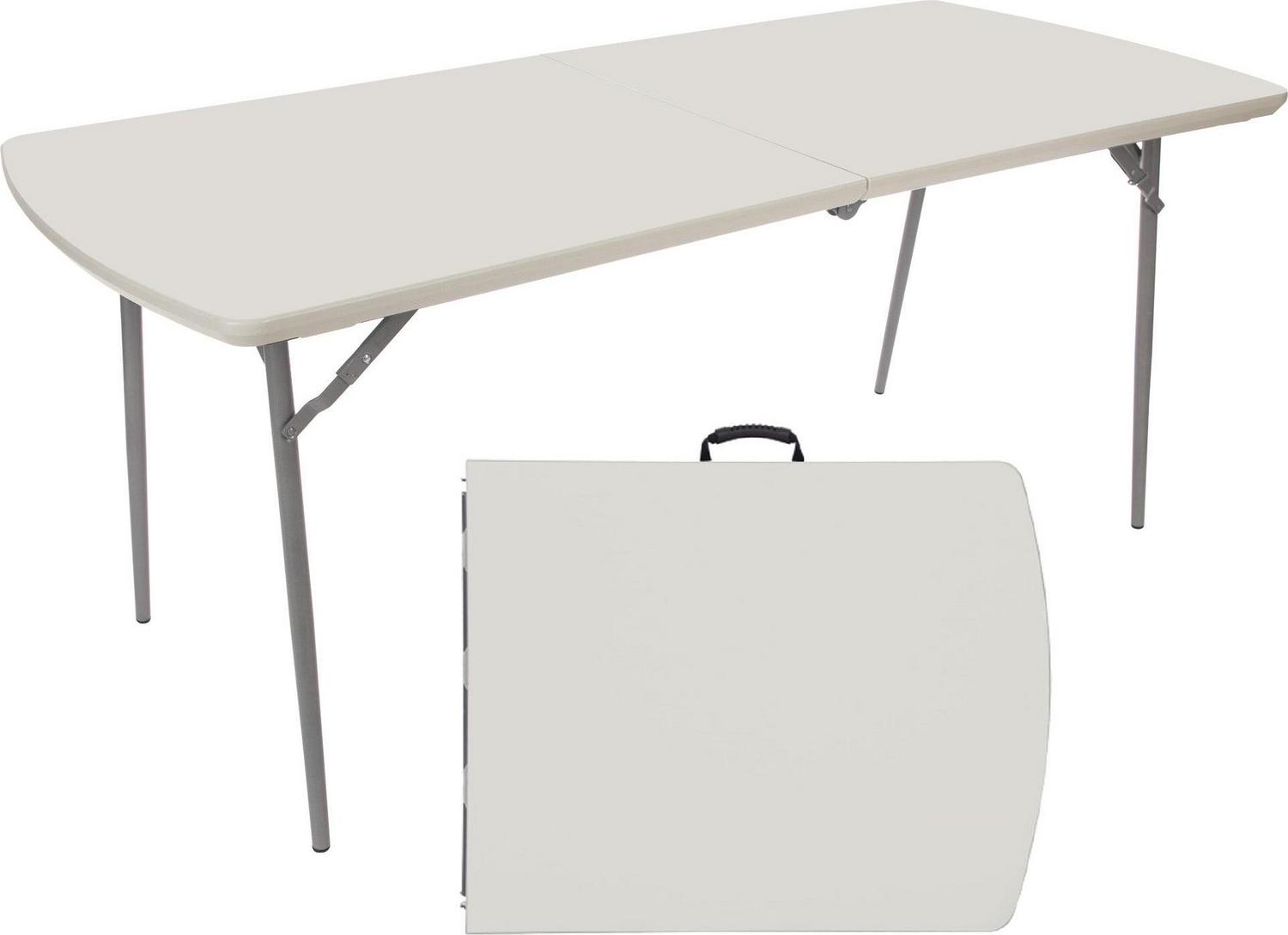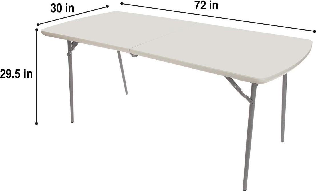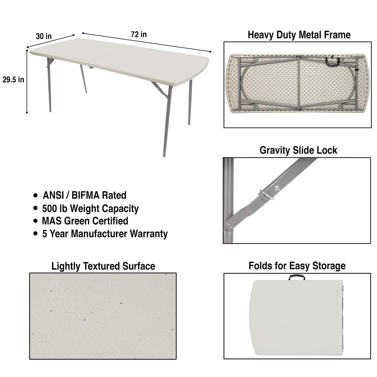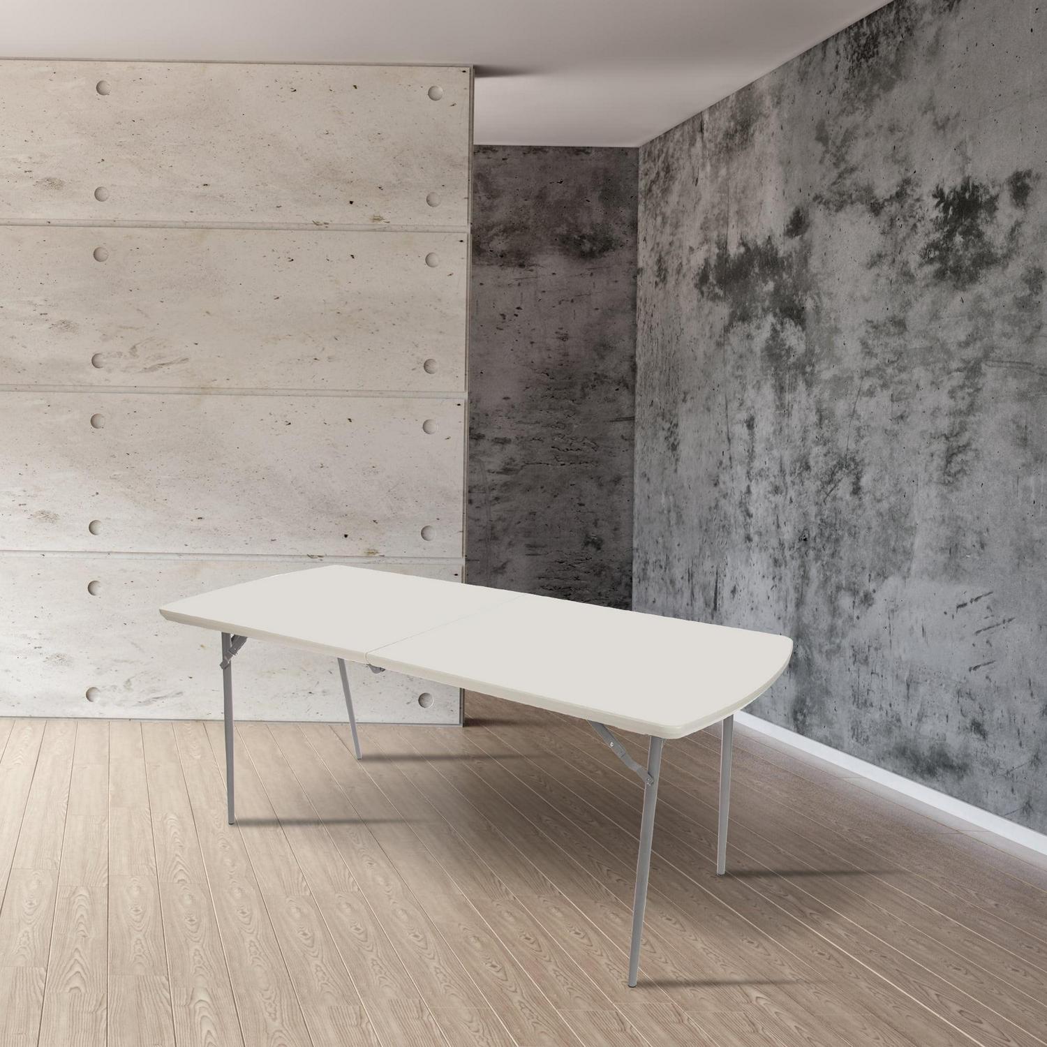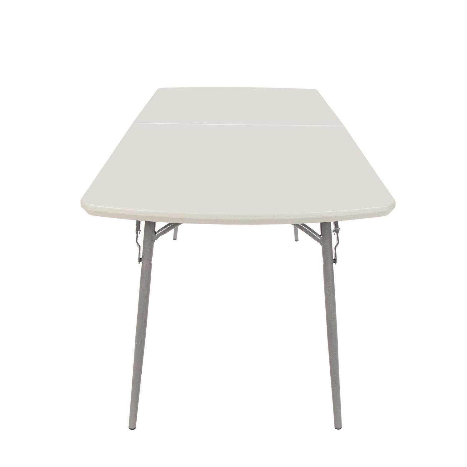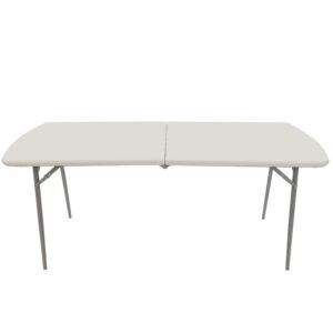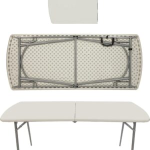 The Baldwin Fold-In-Half Banquet Table is the perfect addition to any home or office space. Whether you’re hosting a dinner party or just need a little extra surface space, this table has you covered. Here’s what makes the Baldwin Fold-In-Half Banquet Table stand out: Comfort: The raised frame at the two ends ensures that adults can easily tuck their knees underneath without fear of banging into the table frame. Classy design: With its rounded ends and oblique edges, this table will add a touch of elegance to any room. Convenient folding: When you’re not using the table, simply fold it in half for easy storage. It’s perfect for small spaces! Durability: Made with high-density polyethylene and a powder-coated steel frame, this table is built to last. Plus, it’s ANSI BIFMA tested and comes with a 10-year warranty. Safety features: The safety gravity rings prevent the legs from collapsing while in use, and the automatic locking device keeps the tabletop securely in place. Easy transport: When the table is folded, it can be easily carried and transported with the convenient carrying handle. So why wait Add a touch of sophistication to your home or office with the Hampden Furnishings Baldwin Fold-In-Half Banquet Table today!