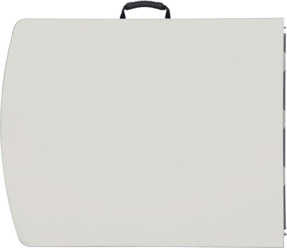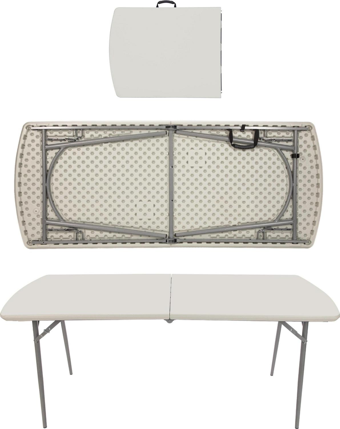 – Unique construction with rounded ends, raised frame for maximum seating comfort, locking leg mechanism, fold in half, with a well placed carrying handle