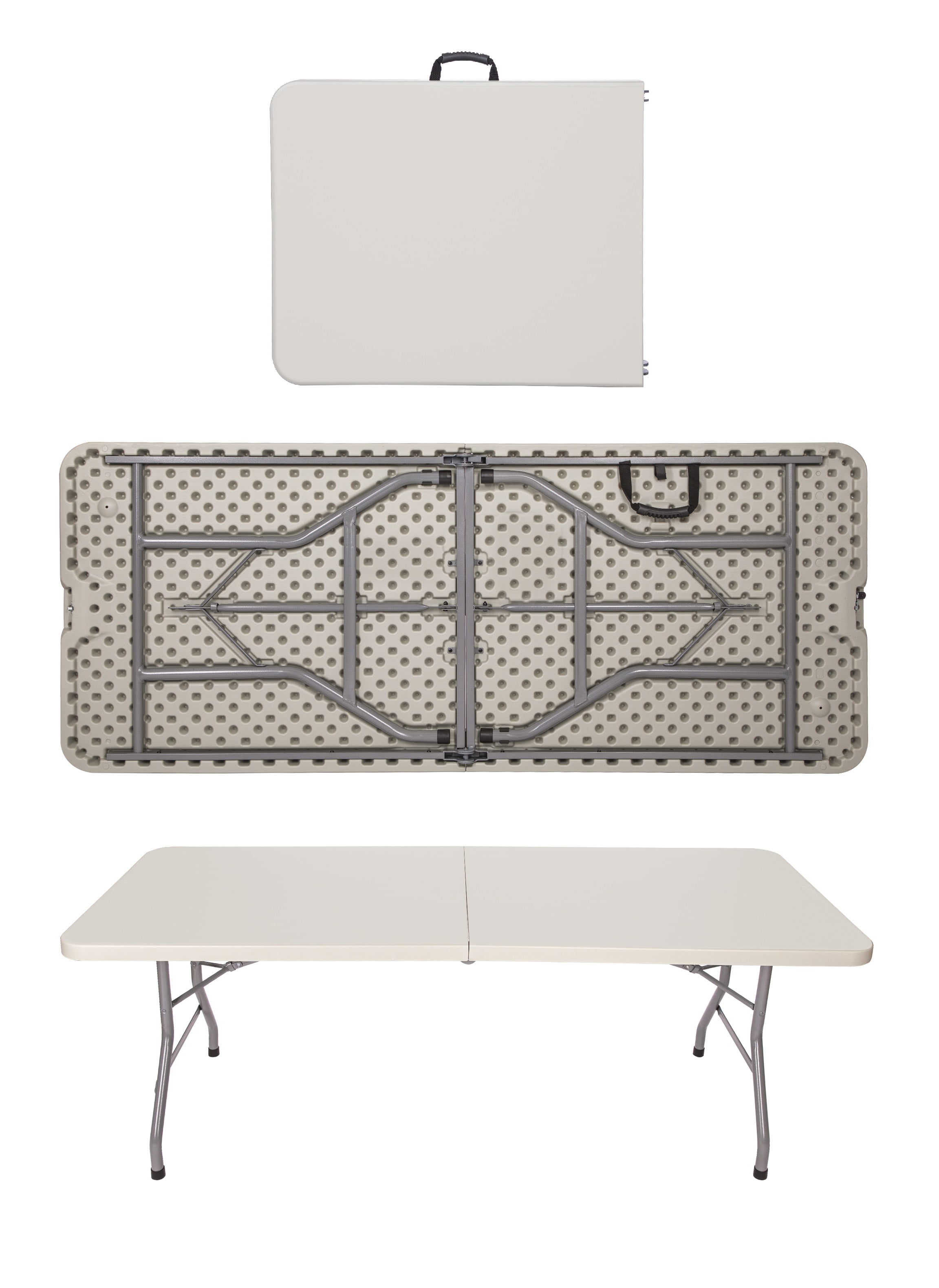 Sturdy Construction: Made with a 1-3/4″ thick tabletop and powder-coated steel wishbone legs, this table is built to last, withstand daily use and is ideal for standard environments Convenient Folding: When not in use, simply fold the table in half for easy storage; its compact size makes it easy to store in small spaces Easy Transport: The convenient carrying handle makes it easy to transport the table wherever you need it