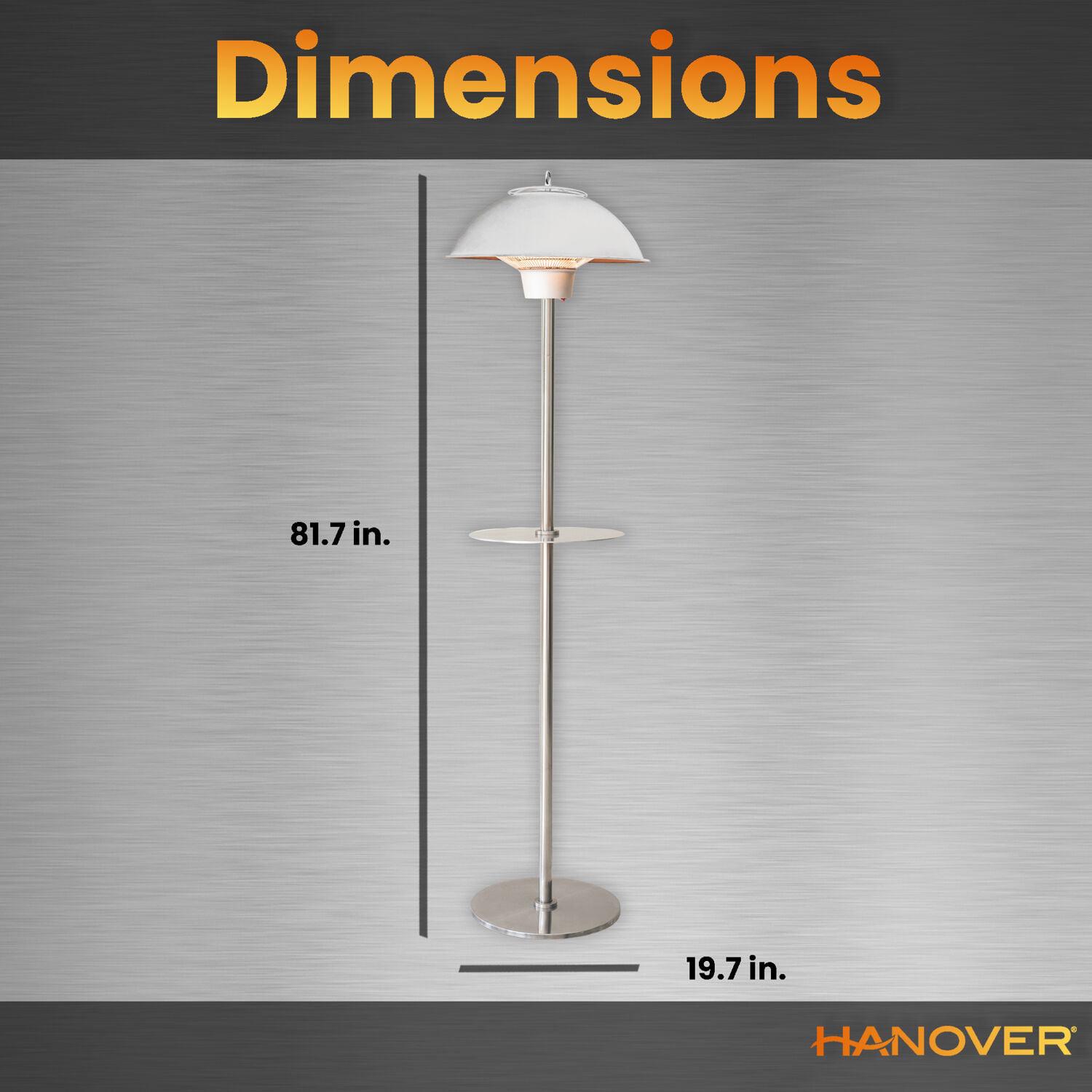 Hanover 6.8-Ft. 1500W Portable Electric Infrared Halogen Stand Lamp | 2 Heat Settings | Powerful Energy Efficient Outdoor Heating | Ideal for Garage, Workshop, Porch, Balcony up to 56 Sq. Ft. | Silver