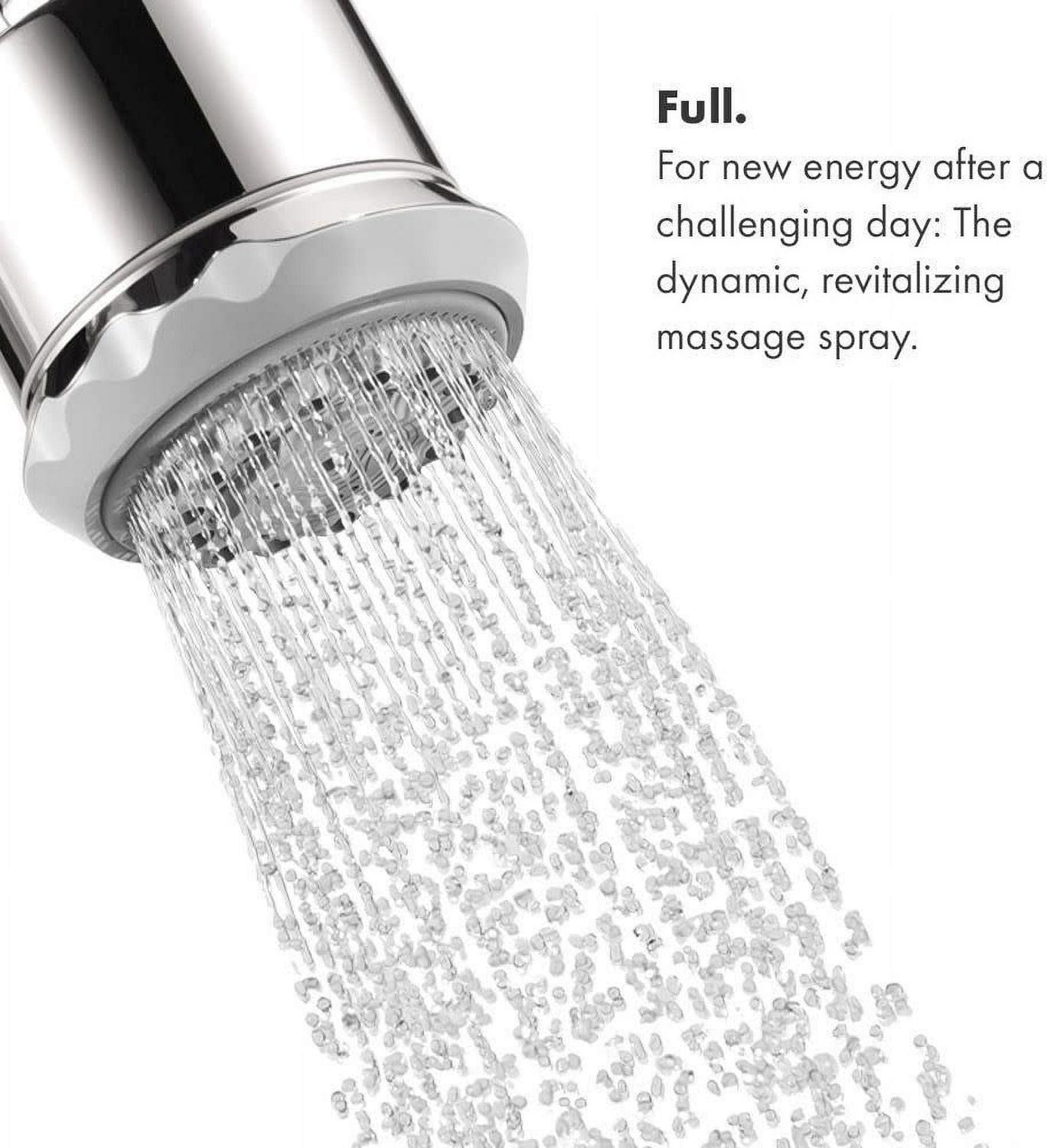 CONCENTRATED WATER COVERAGE: The 3-inch showerhead diameter mimics the feeling of a natural rain shower, creating a spa-like shower experience,WATER FLOW: The 2.5 GPM flow rate provides thorough water flow,STYLE VERSATILITY: Compatible with a wide variety of shower trim styles to fit your existing bathroom decor,EASY INSTALLATION: Hansgrohe showerheads are easy to install, simply take your old showerhead off and replace it with your new one,SIMPLE TO CLEAN: The 72 easy-to-clean anti-limescale silicone spray nozzles optimize water flow performance and can be quickly wiped clean,EASY ADJUST POSITIONING: The 26-degree range allows you to get just the right angle needed to fit your shower,RANGE OF SPRAY MODES: This showerhead features 3 sprays: Full, Pulsating Massage, and Intense Turbo that provide everything from a luxurious rain shower for washing away daily stress to an invigorating massage spray perfect for tired muscles,CONNECTION DETAILS: Contains standard 1/2-inch connection to easily retrofit to any showerarm,INSTALLATION NOTES: Hansgrohe recommends a licensed plumber install this product,LIMITED LIFETIME CONSUMER WARRANTY: All Hansgrohe products are covered by a limited manufacturer warranty applicable to the original purchaser