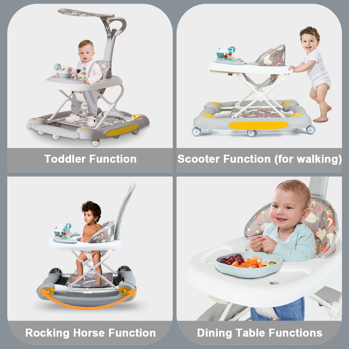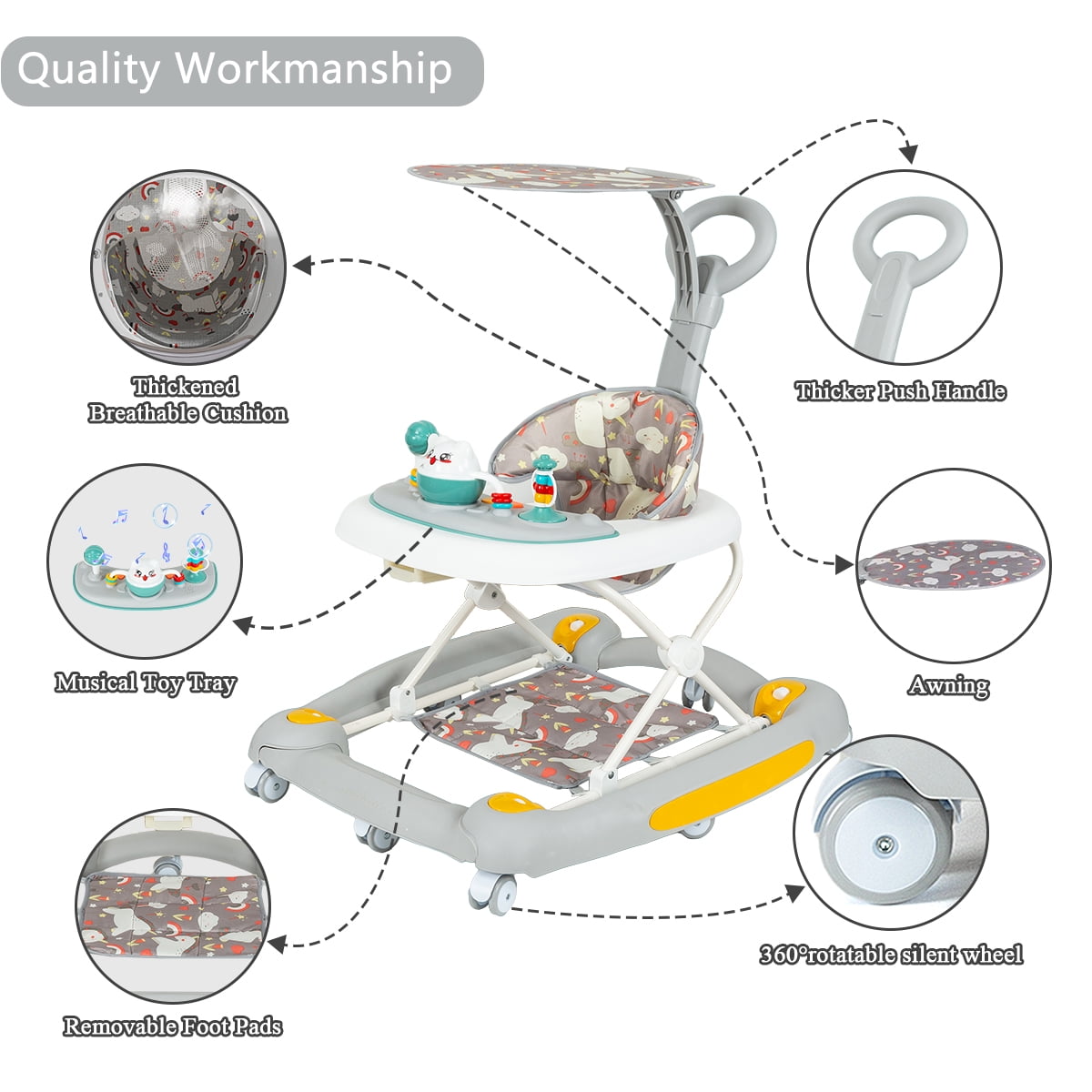 HAOUUCYIN Baby Walker, 6-in-1 Multi-functional Foldable Push Walker, 6-24 Months, Gray