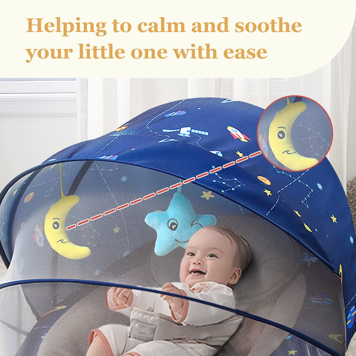 Scientific 4 Multiple Sway Speeds HAOUUCYIN baby swing for Infants features the 3 unique swing speeds, that can help your baby calm down. The swing takes care of your baby’s spine development. Suitable for babies 5-20 Lb, 0-12 Months 3-Point Harness & Detachable Protective Net The baby bouncer features a 3-point harness, soft and skin-friendly fabrics, anti-skid and easy-to-clean seat pad that bring safer protection and comfort to your baby. bluetooth Music Speak & Remote Control With bluetooth connection for playing music, you can play nursery rhymes from your phone. Remote Control help you control the baby swing chair, allowing you have your own space and time. With 4 timing functions, you can set the time at will for 8-15-30-60 minutes, effectively saving your time and energy. Assembled dimensions: 27.50 x 25.50 x 20.80 Inches. Lightweight and Portable The lightweight infant swing has travel size and is perfect for transporting. You just need about 3 minutes to quickly install. The detachable net and canopy prevent other animals from bothering babies in the summer. Modern and Trendy Design The chair’s design closely fits the baby’s back curve, ensuring the utmost comfort and safety for your baby’s development.