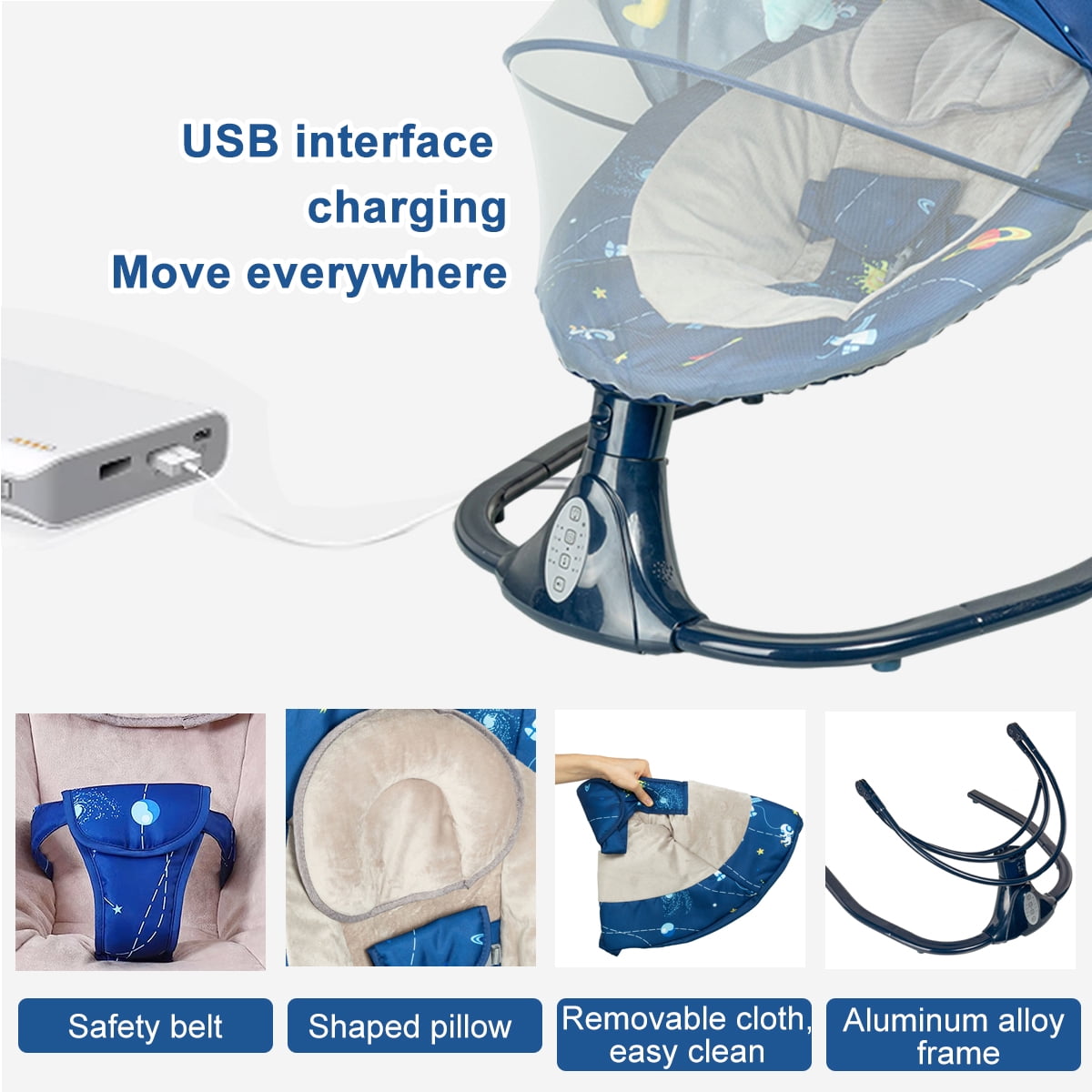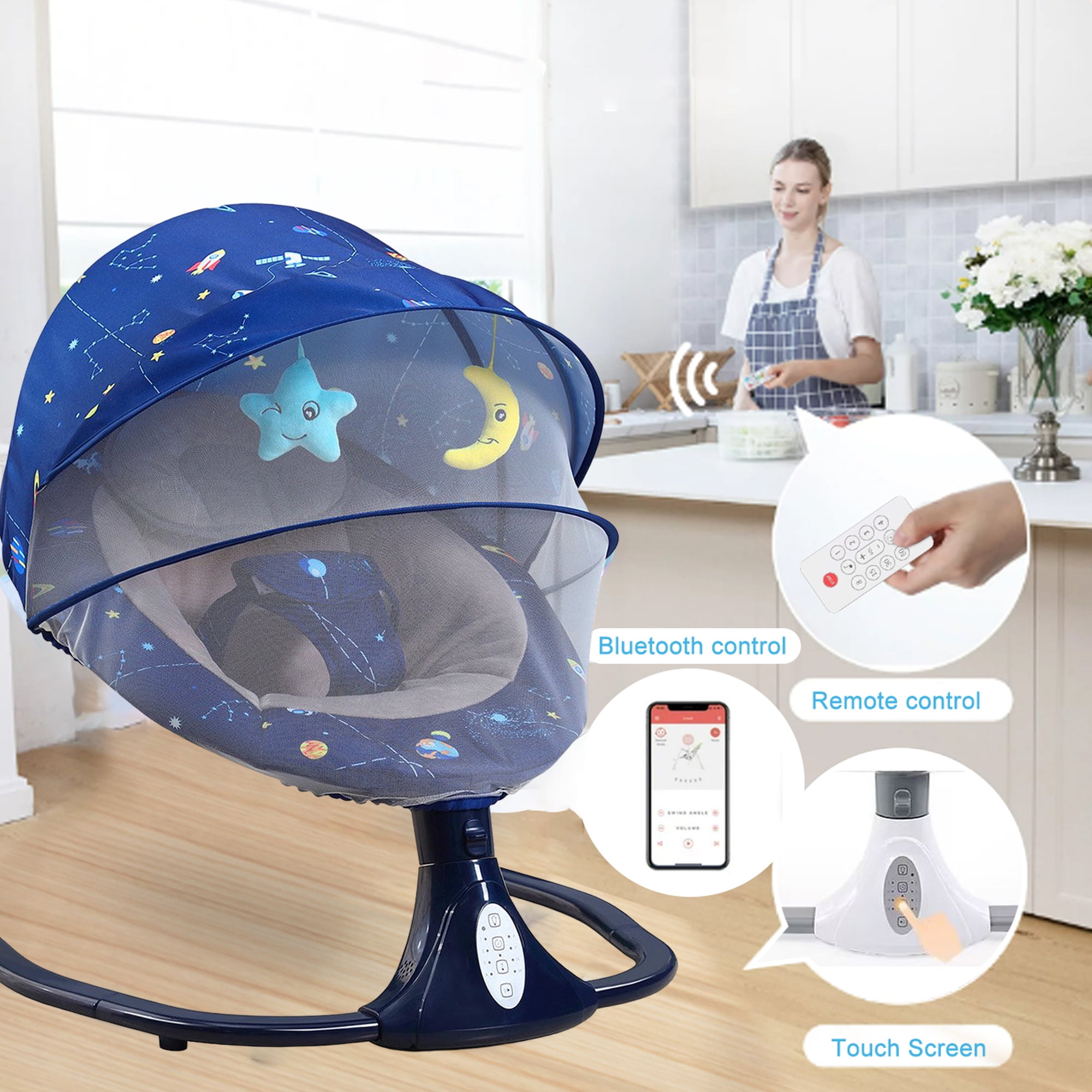 HAOUUCYIN Baby Swing for Infants, Newborn Electric Swing Chair with 4 Gears & Timer & bluetooh Music, Blue