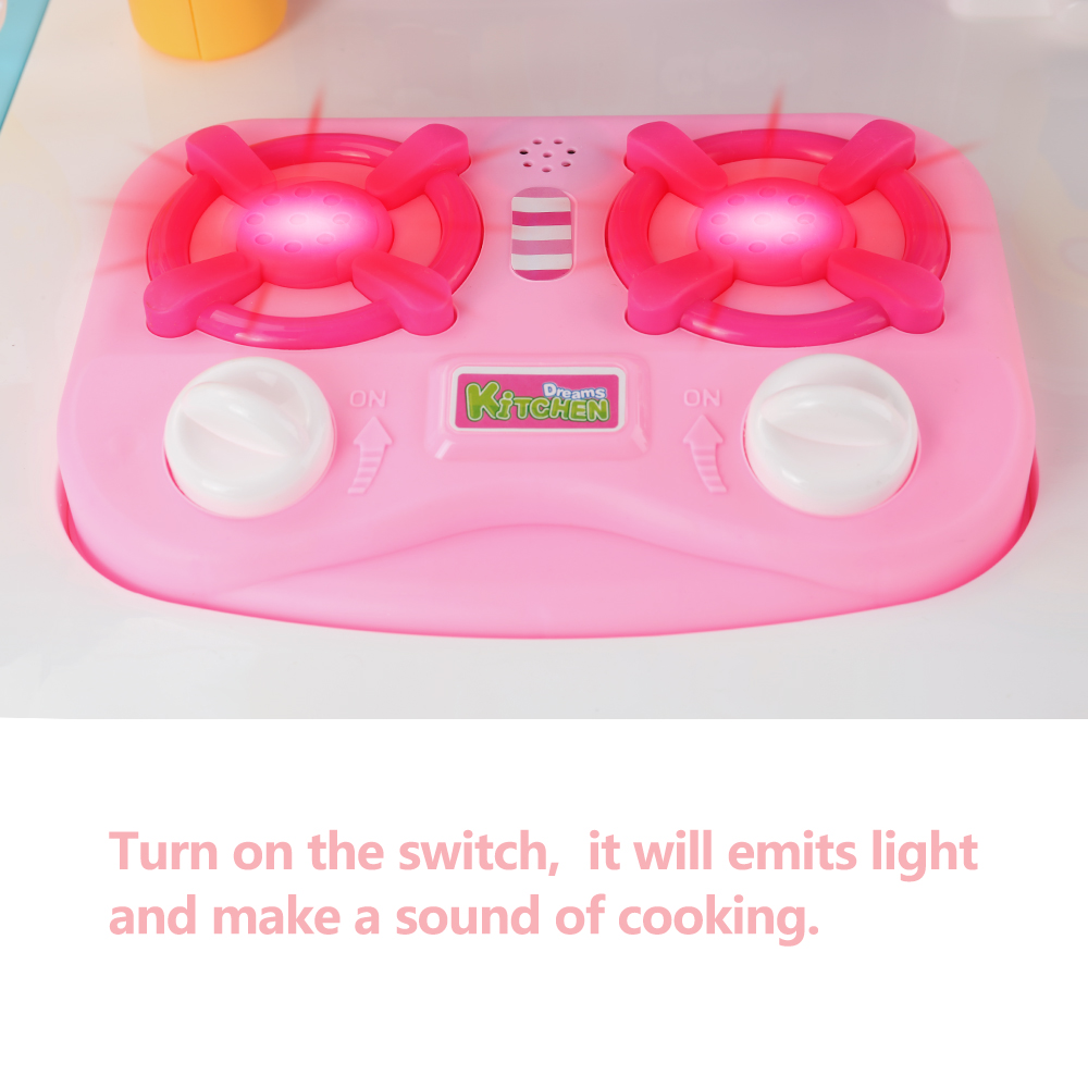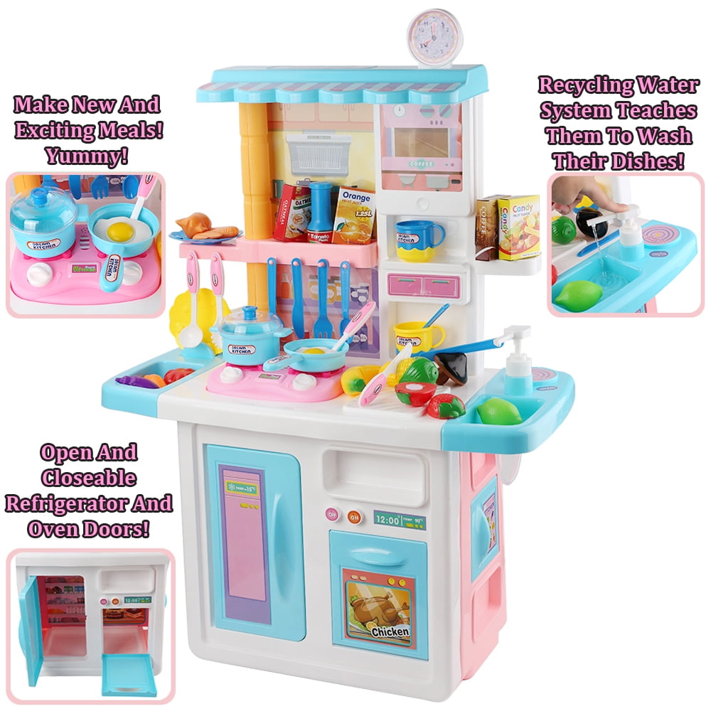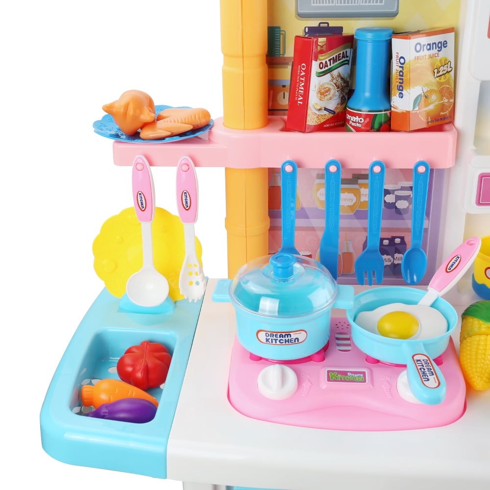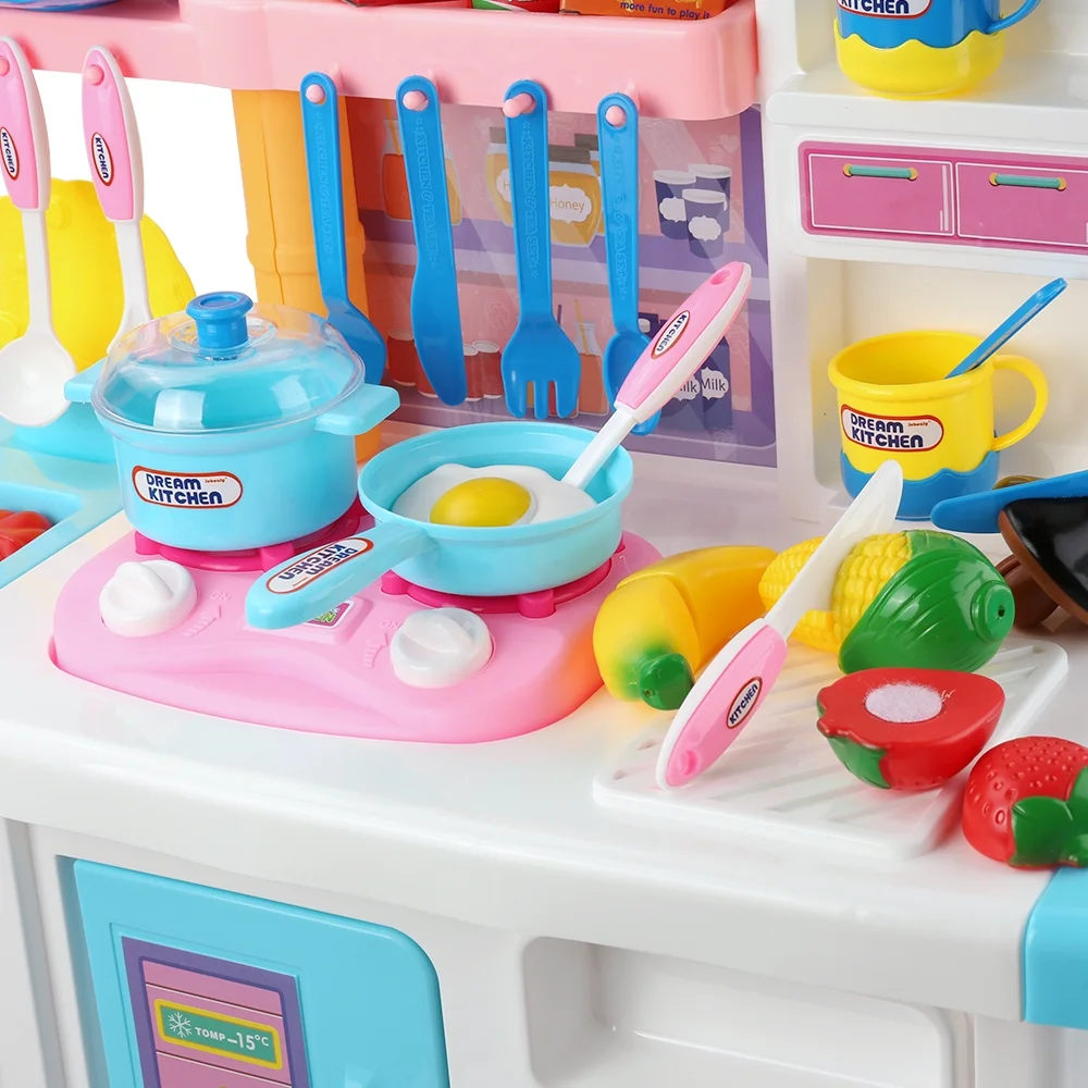Give your child the gift of cooking! Enjoy playtime in a completely new way with our complete miniature kitchen play set! Our play set comes packaged with all sorts of kitchen items, including: eating utensils, food, pots and battery powered sounds and lights. Our play set offers great educational value as well as long hours of fun as your child learns the ins and outs of cooking and preparation. Help your child enjoy the wonders of food preparation today!