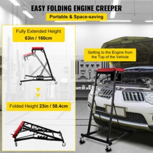 – Made of sturdy metal, this foldable engine creeper gives you reliable support. Extra heavy-duty construction is rated to hold up to 400 lbs. With a compact design, the automotive engine creeper can fold easily to save your space.