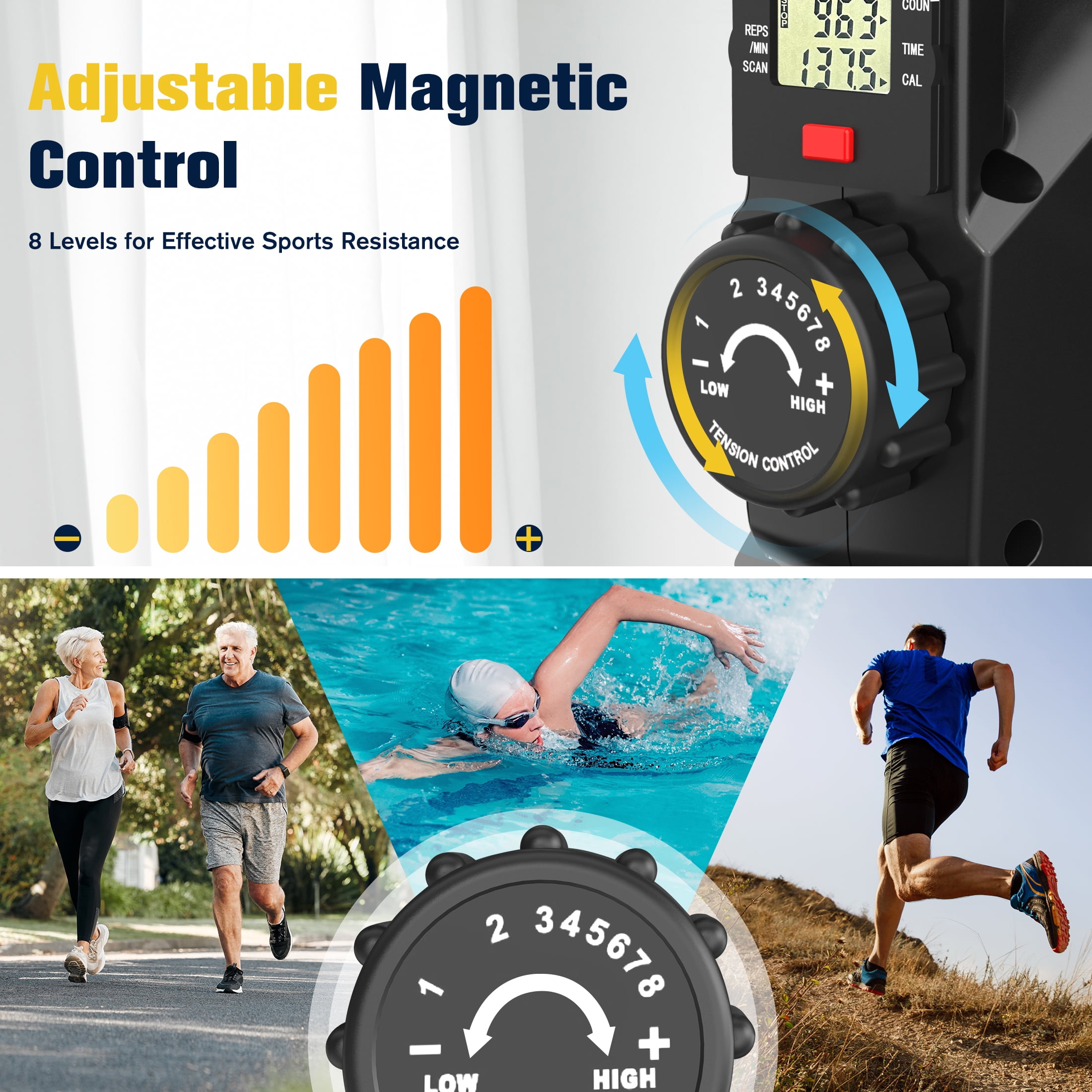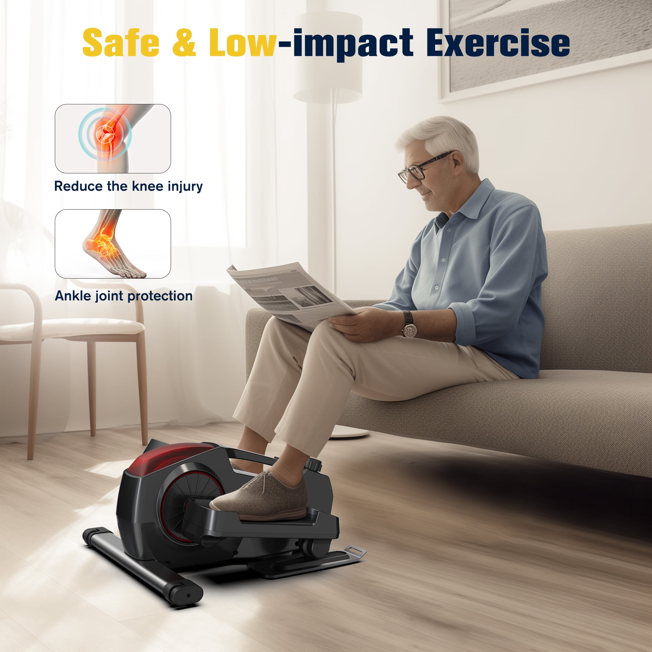 Features Easiest Fitness Equipment–Get fit and strong with our easy-to-use under desk elliptical. Achieve optimal health with just 75 minutes of aerobic exercise per week. 8 Resistance Levels–Customize your exercise with adjustable tension. Enhance circulation and relieve pain with lower resistance. Burn calories faster and boost bone density with higher resistance. 100% pre-assembled–Ready to use right out of the box. The portable handle enables convenient carrying and storage. Absolute Stability–Our stabilizers keep the exerciser steady while pedaling, and the optional strap secures it to your chair. Stepper is perfect for seniors and anyone seeking a safer workout experience. Under Desk Exercise–Compact size fits in any space for convenient stepping while watching TV or working. Achieve toned legs and lifted buttocks. Perfect Workout Gift–Enhance blood circulation, suitable for weight loss, office workers, and senior leg rehabilitation with an under-desk elliptical. Strengthen and relieve tension in knees, hips, feet, and legs, reducing ankle swelling. A thoughtful gift for family and grandparents.