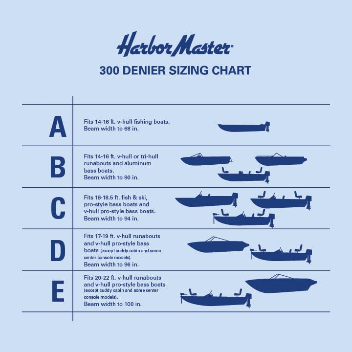 The Harbor Master 300-Denier Polyester Boat Cover is the choice for an easily installed cover. It can be used for boats that are moored as well as trailered, simply tie it down with the trailering straps. Featuring heavy-duty, construction, it can stand up to the elements and the airflow when moving the boat on a trailer. This 300-Denier Boat Cover has a snug fit and includes a storage bag when it is not in use.