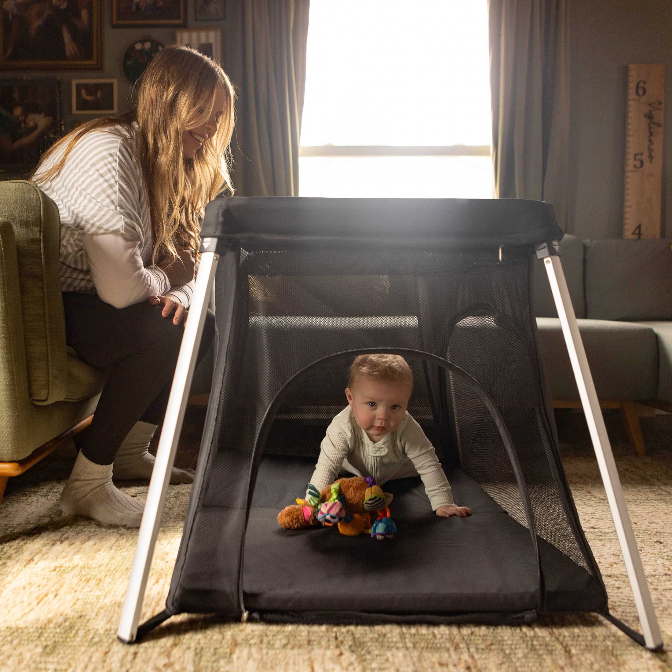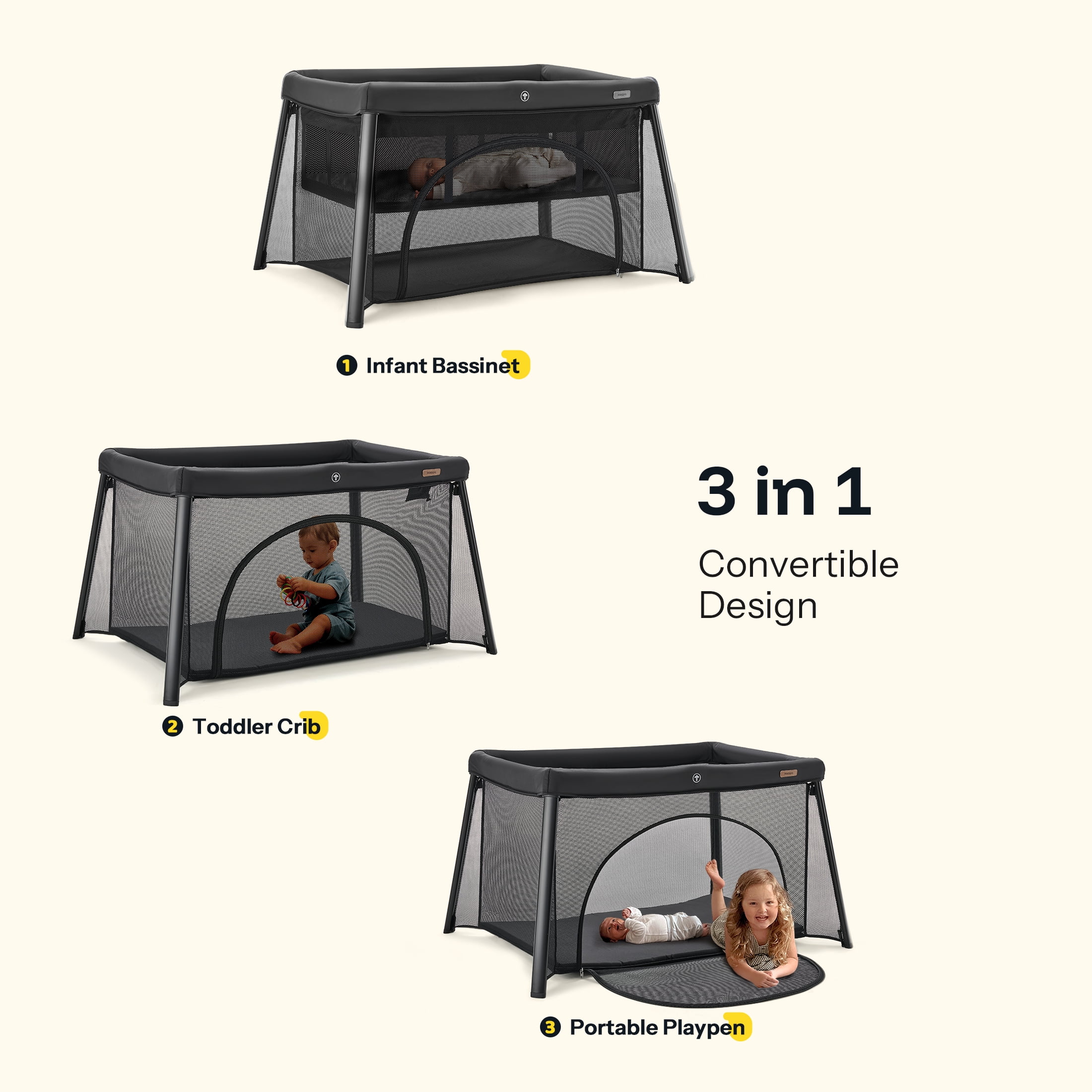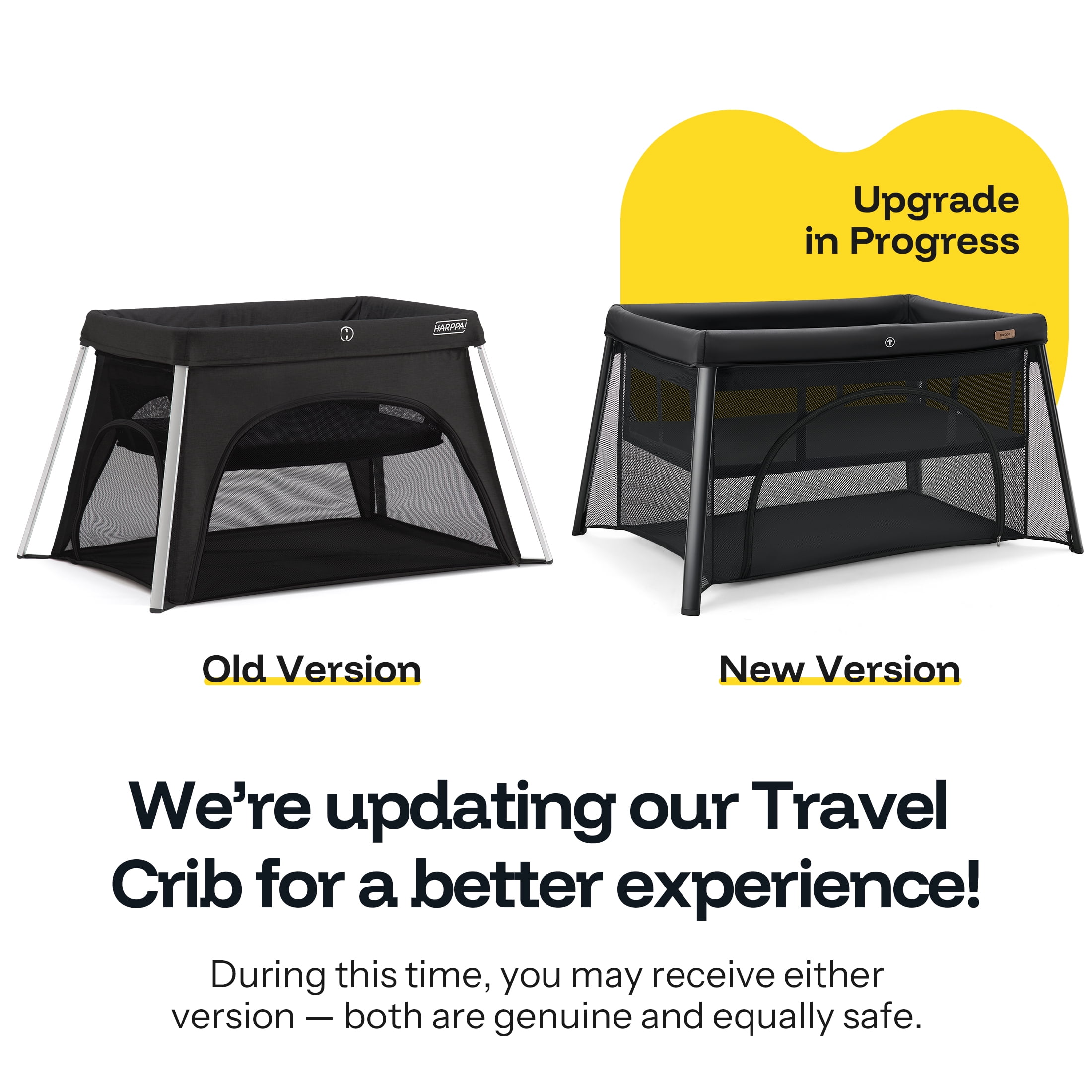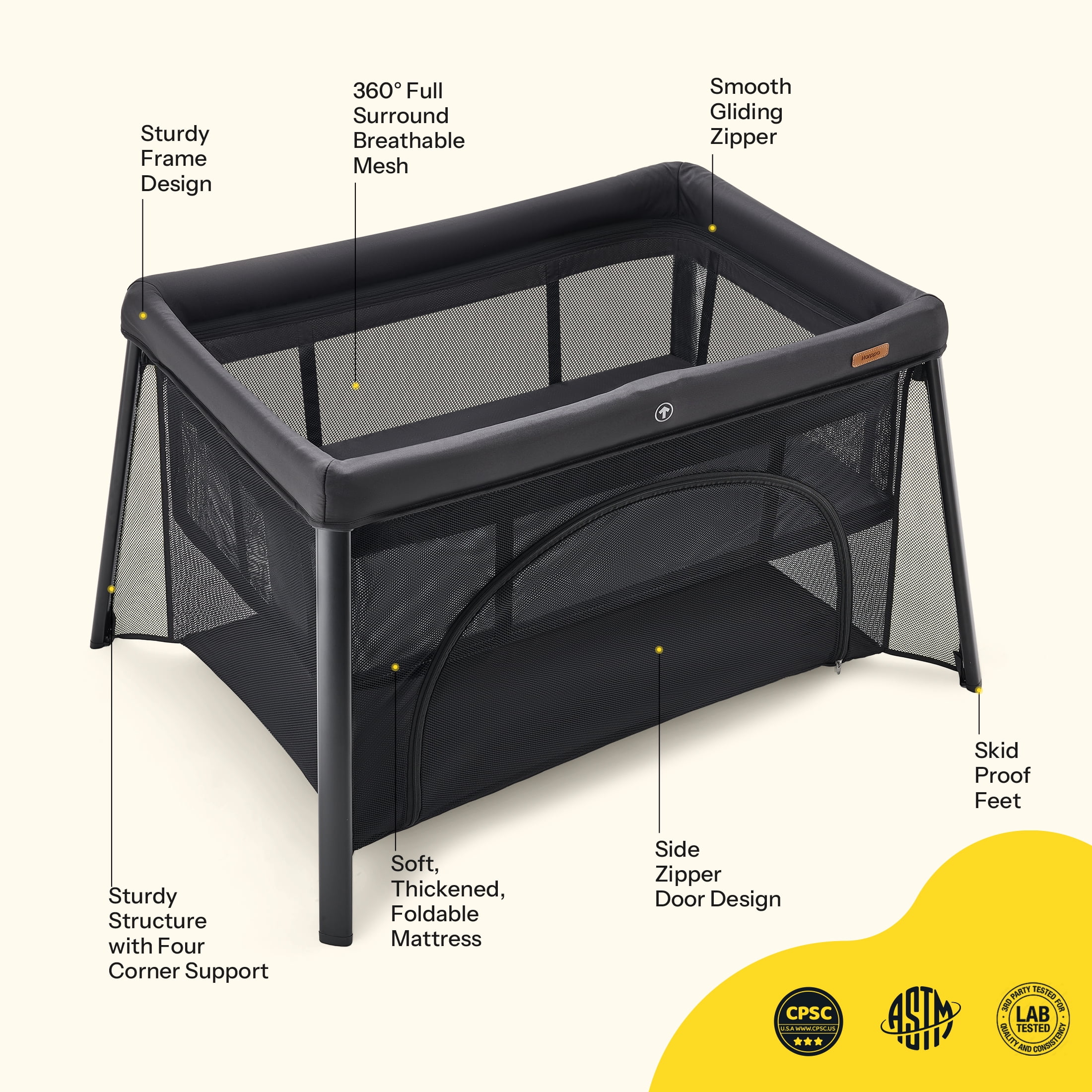 HARPPA Portable Travel Crib with Mattress, Foldable Playard for Baby and Toddler, 11lbs, Black