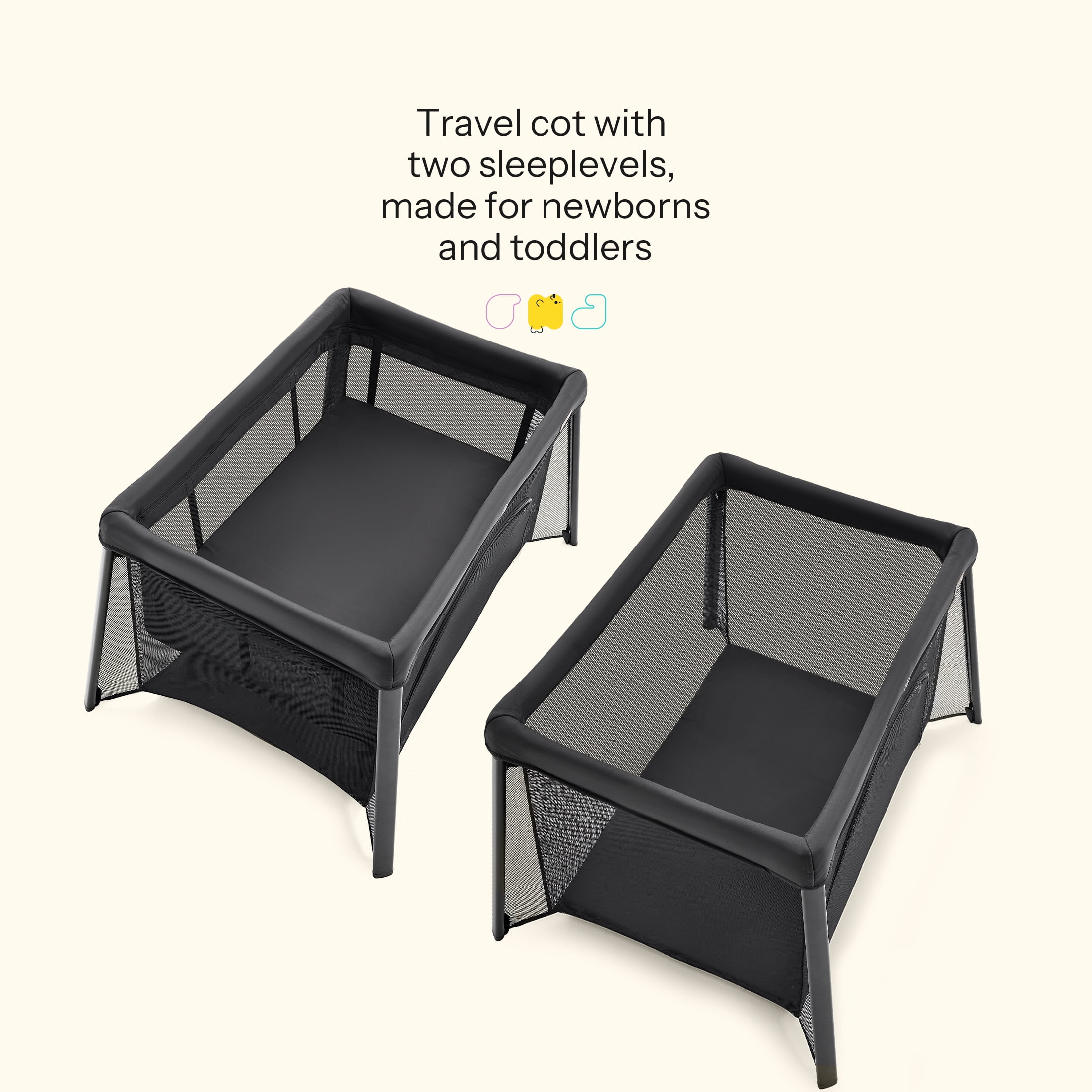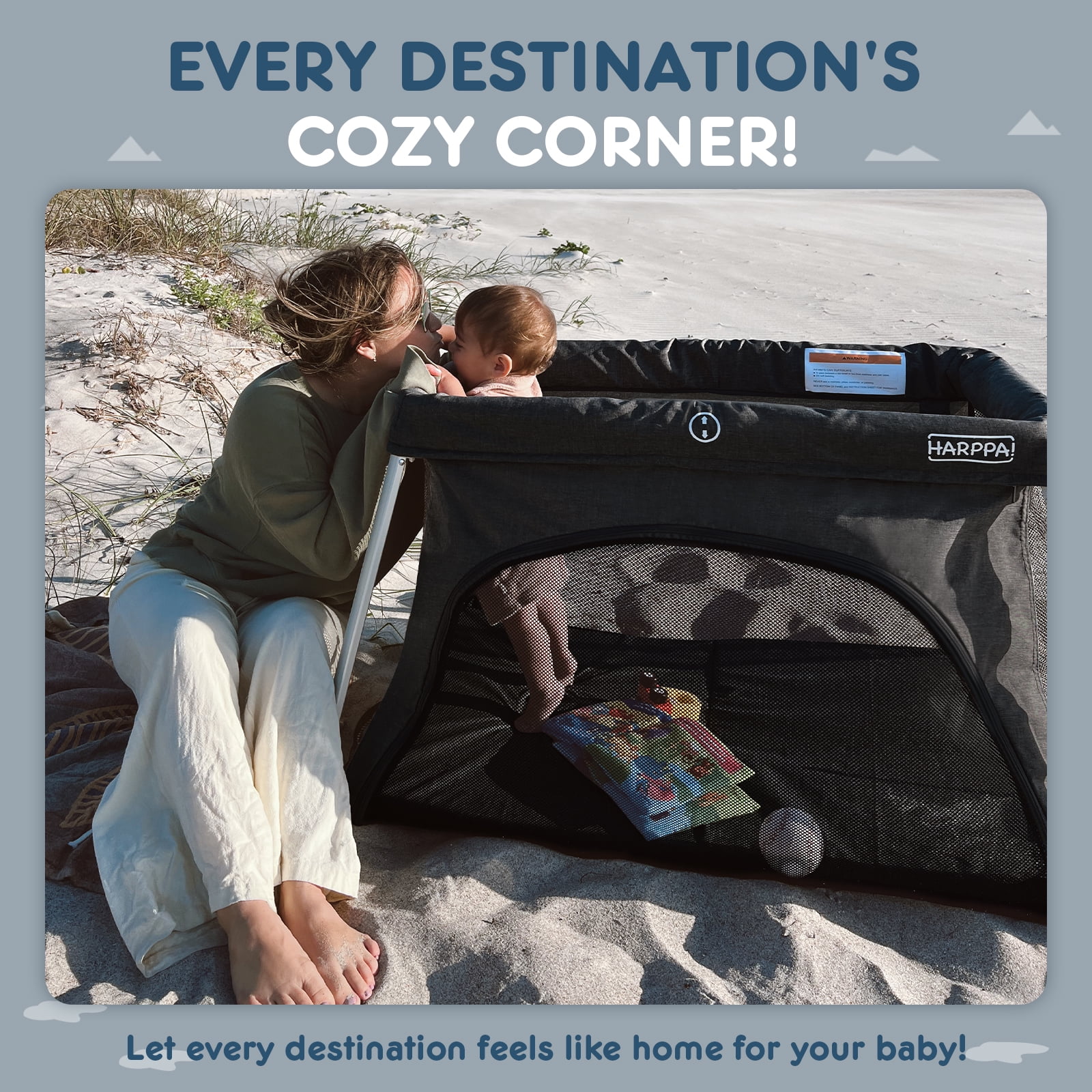 Introducing HARPPA 2 IN 1 Portable Travel Crib and Playard, the perfect solution for parents on the move. This portable crib doubles as a travel crib and a travel playpen for babies aged 0-3 years. Easily convert it from a crib to a playpen by removing the mattress – it’s a pack n play for baby to toddler! Its stable design ensures safety, while breathable mesh sides provide ventilation and visibility. With its foldable design, quick installation, and easy packaging, it’s ideal for busy parents on the go. Enjoy peace of mind and convenience with this travel crib for baby for your baby’s sleep and play needs, whether at home or on the move. The inclination angle of the Sleeping surface to the horizontal plane is less than 10°