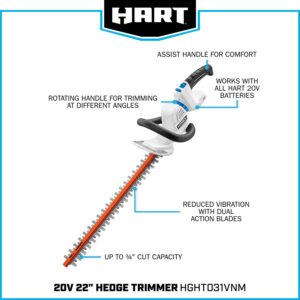 HART 20-Volt 22-inch Cordless Hedge Trimmer Kit, (1) 2.0Ah Lithium-Ion Battery