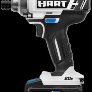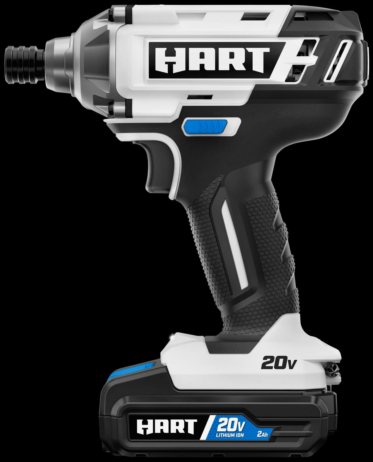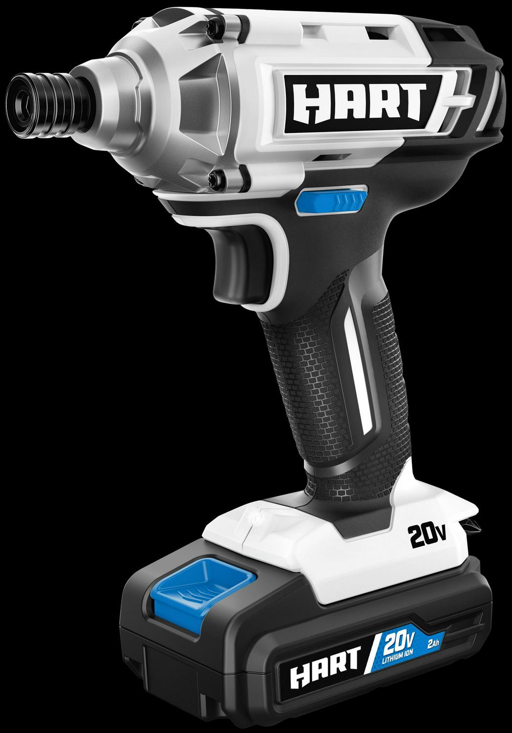 - HART 20V Impact Driver: Up to 1,700 in-lbs. of torque, variable speed trigger, 1/4″ quick connect collet