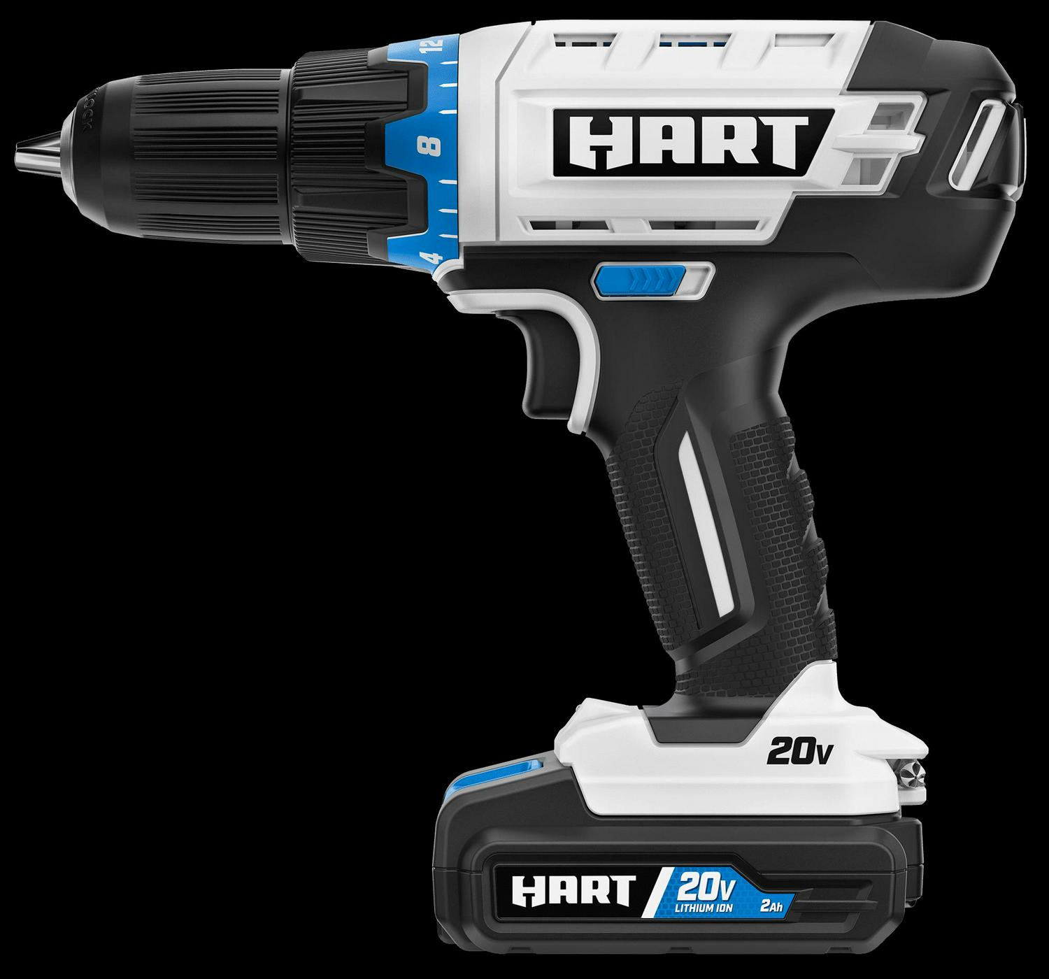 – HART 20V 1/2″ Drill/Driver: 2-speed gearbox, adjustable clutch & 1/2 chuck