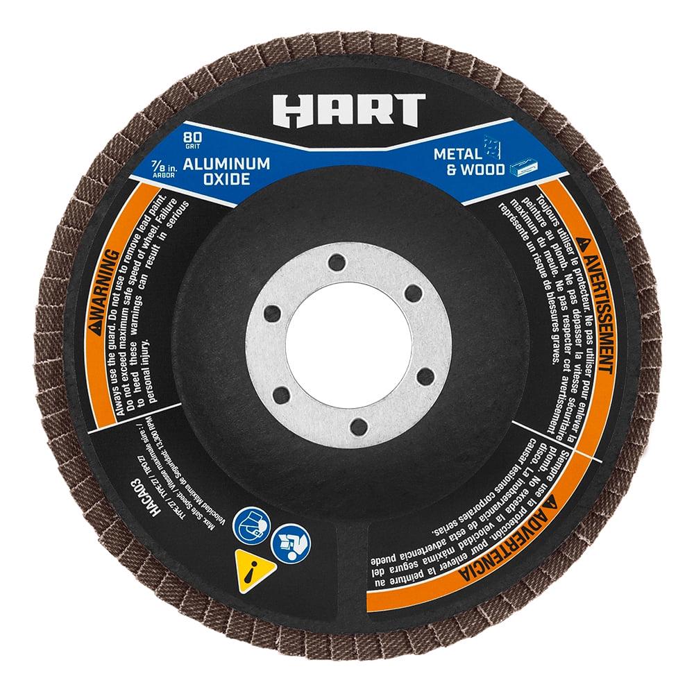 Bundle Includes: (1) HART 20V Angle Grinder Kit, 2 Piece 4.5-inch Flap Disc 36 Grit, 2 Piece 4.5-inch Flap Disc 60 Grit and 2 Piece 4.5-inch Flap Disc 80 Grit.