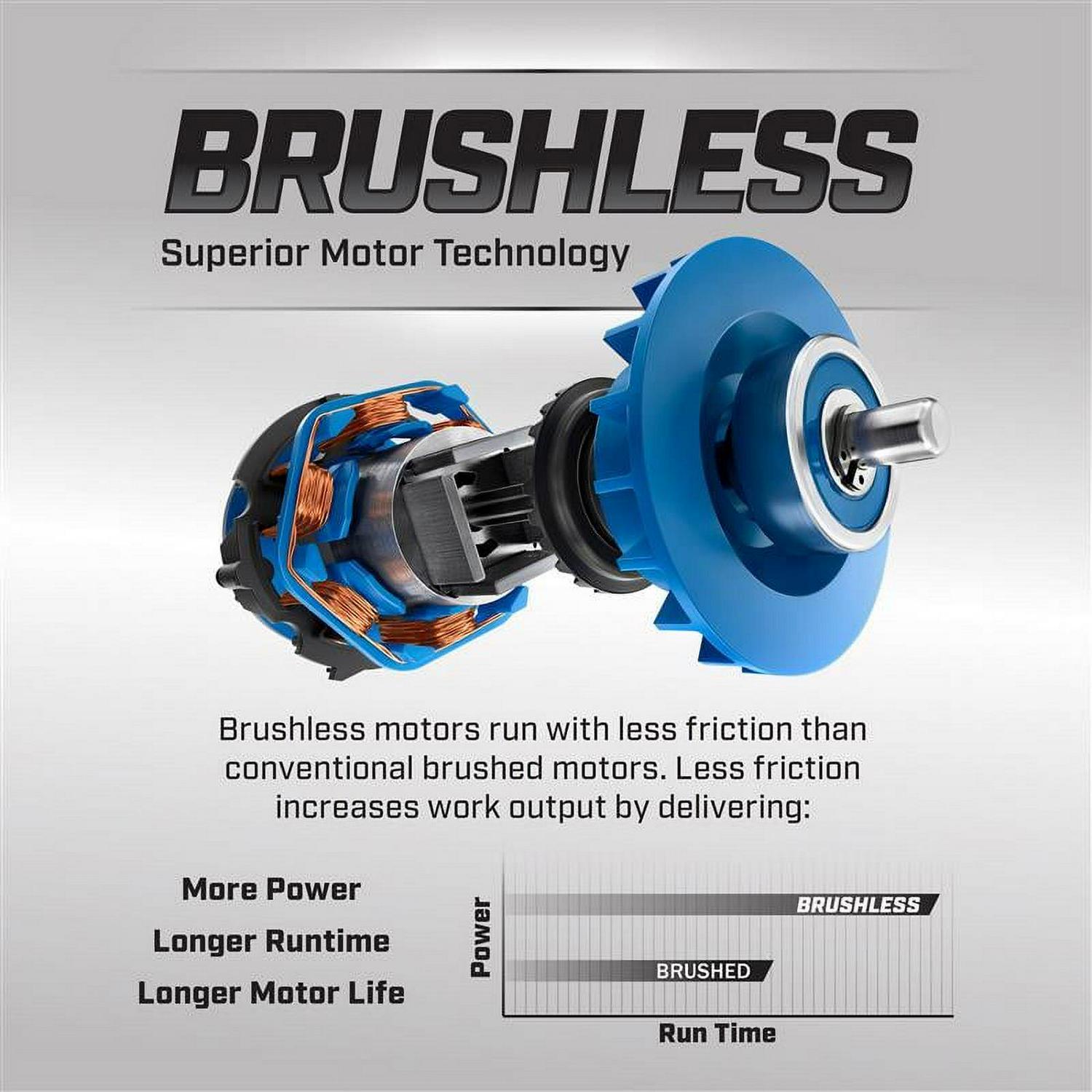 - Brushless Motor delivers up to 58% longer runtime and up to 36% faster cutting speeds**