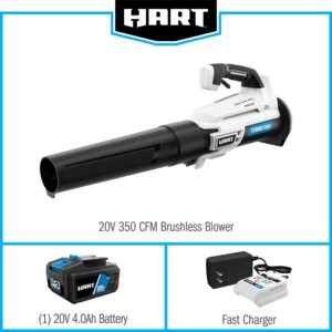 HART 20-Volt Brushless 110 MPH at 350 CFM Turbo Fan Blower Kit, (1) 4.0Ah Lithium-Ion Battery