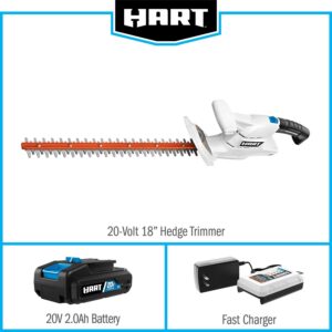 HART 20-Volt Cordless 18-Inch Hedge Trimmer Kit, (1) 2.0Ah Lithium-Ion Battery