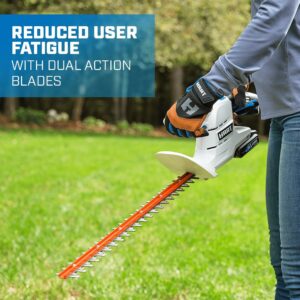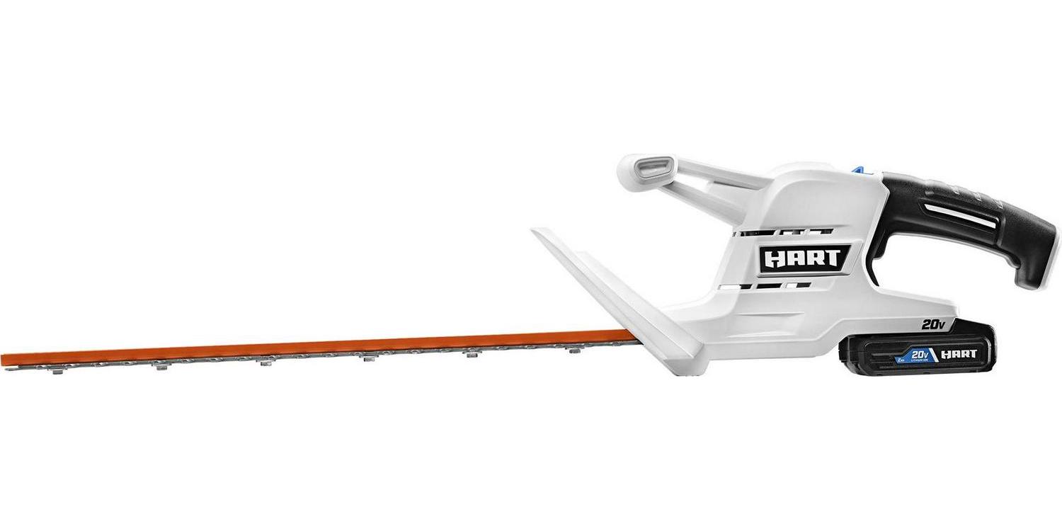 Trimming hedges in your yard is enough work, the last thing you need is having to mix gas with oil or navigating around an extension cord. That s why you ll like HART s 20V 18 Hedge Trimmer. This cordless model allows for unrestricted mobility, making it easier to move from one area of the yard to another. It features an 18 dual-action blade, which means there are 2 blades moving in the opposite direction that ll slice through branches up to 5/8 thick. The dual action blade also helps reduce vibrations for user comfort and ease of use. Generally speaking, most hedge trimmers can be quite heavy. Not so with this trimmer. It weighs just 4.6 lbs., so you can use it for longer periods of time without feeling fatigued. And it works with ALL HART 20V batteries.