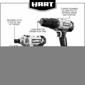HART 20-Volt Cordless 2-Tool Combo Kit, 1/2-inch Drill/Driver, Impact Driver, (1) 1.5Ah Lithium-Ion Battery