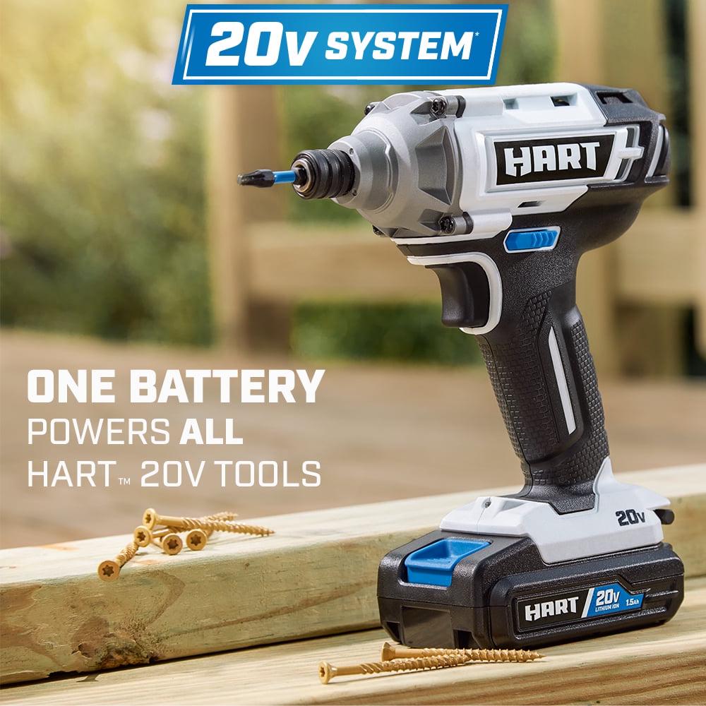– The 20V one battery system allows you to interchange the battery on all 20V HART products. It powers all HART 20V tools, outdoor, automotive and lifestyle items