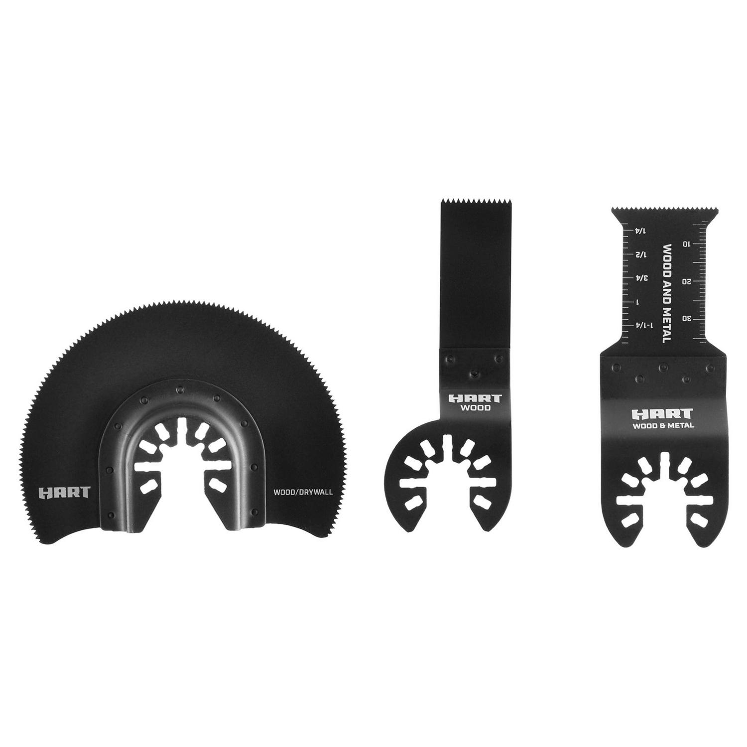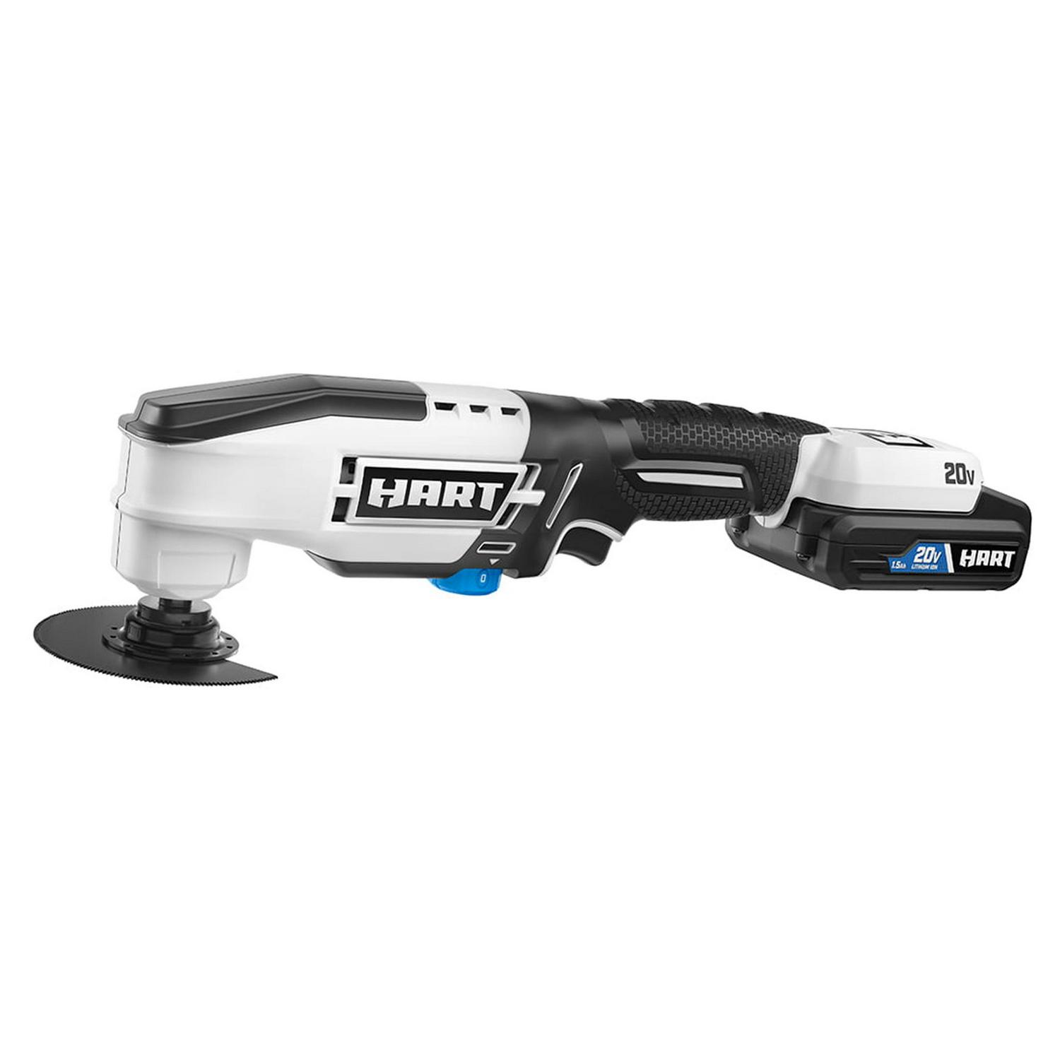 HART 20V Multi-Tool: Compact and powerful with 0-20,000 OPM for precision in tight spaces Variable speed dial allows user control in a variety of cuts, LED light illuminates work space for greater versatility, Included on-board storage, Ideal for Cutting, Sanding, Scraping and Grinding through a Variety of Materials. HART’s 3P Oscillating Accessory Set: Compatible with most brands, Bi-Metal blade provides versatility and durability. For best results, pair with the HART 20V Multi-tool. Bundle Includes: 20-Volt Cordless Multi Tool Kit (1) 20-Volt 1.5 Ah Lithium Ion Battery, (1) 1-1/8″ Bi-Metal Plunge Cut Blade, (1) 3-1/2″ Flush Cut Blade, (1) 3/4″ Offset Plunge Cut Blade, and operator’s manual.