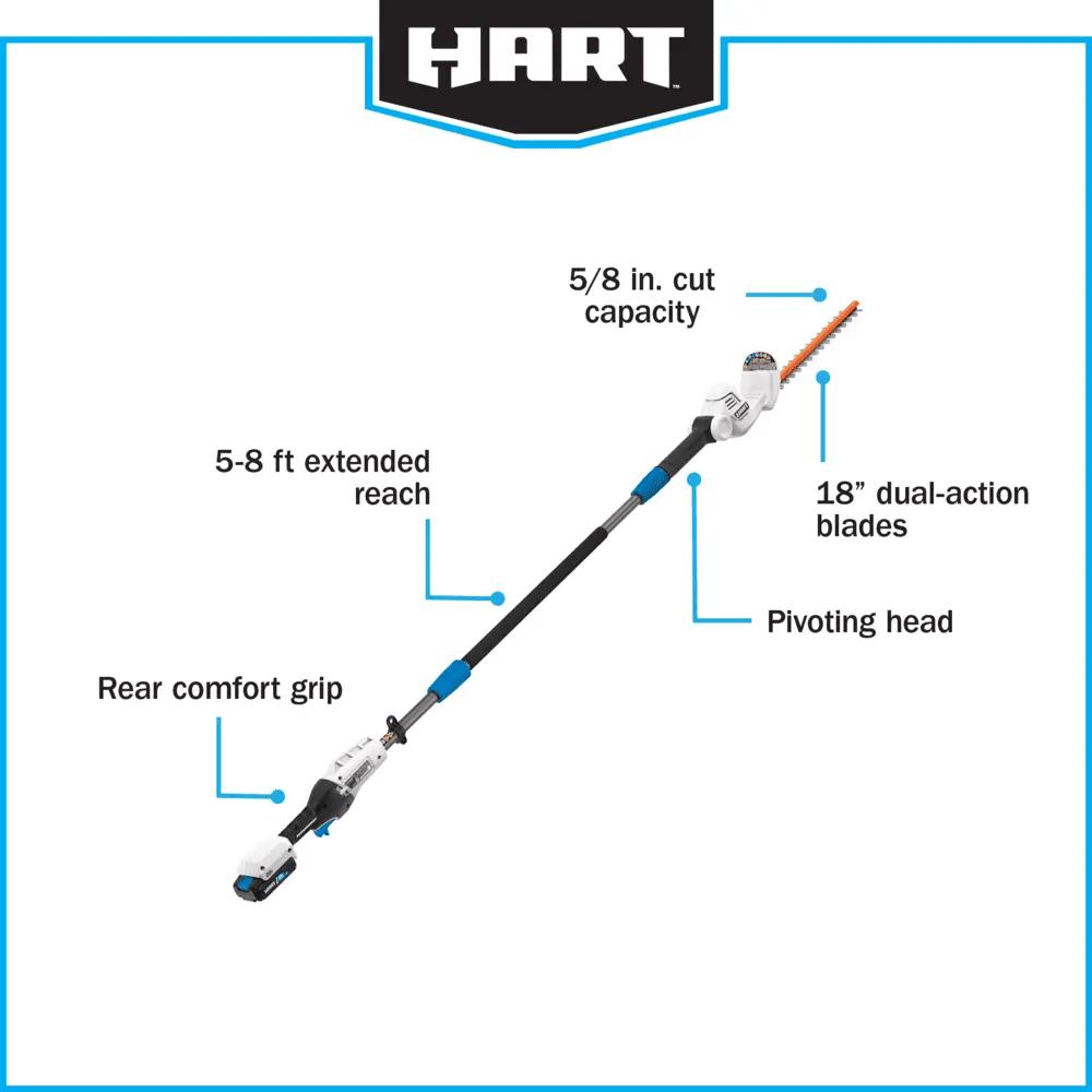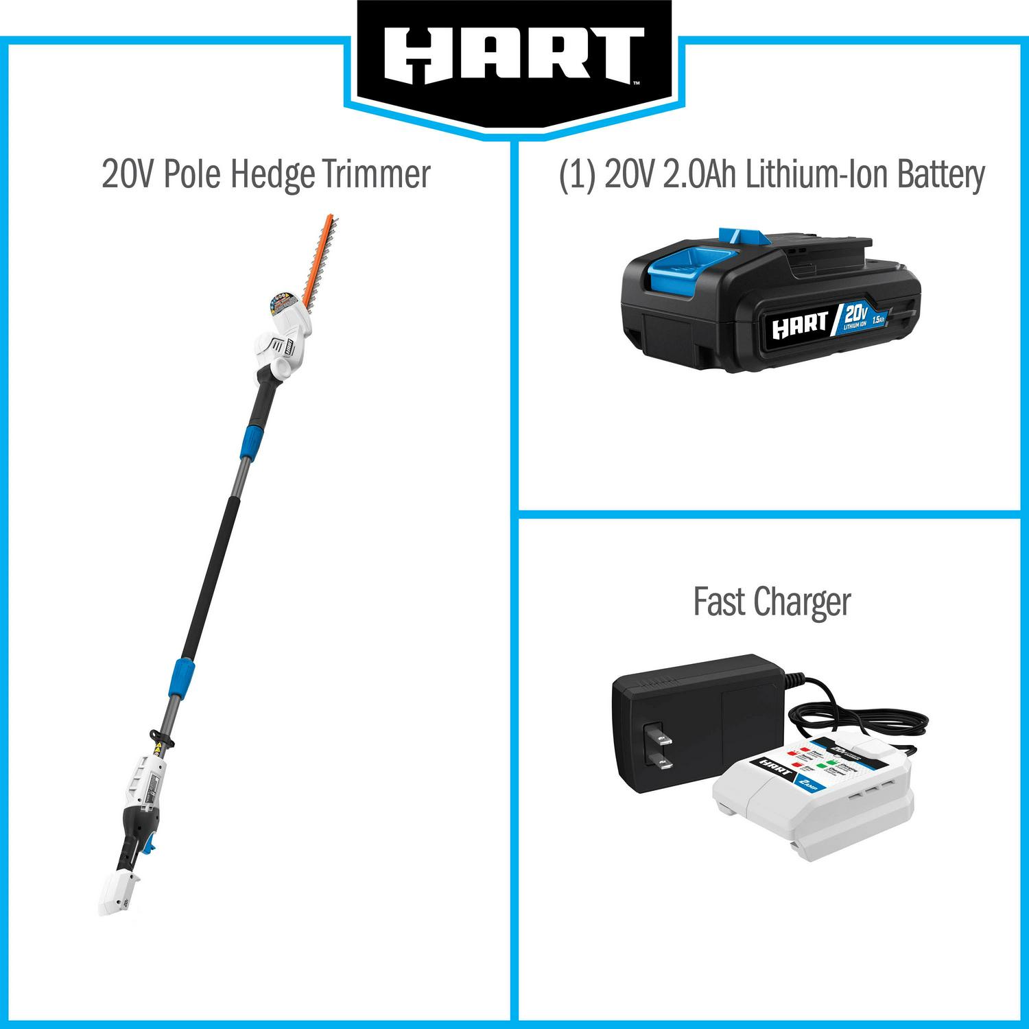 HART 20-Volt Pole Hedge Trimmer Kit, (1) 2.0 Ah Lithium-Ion Battery