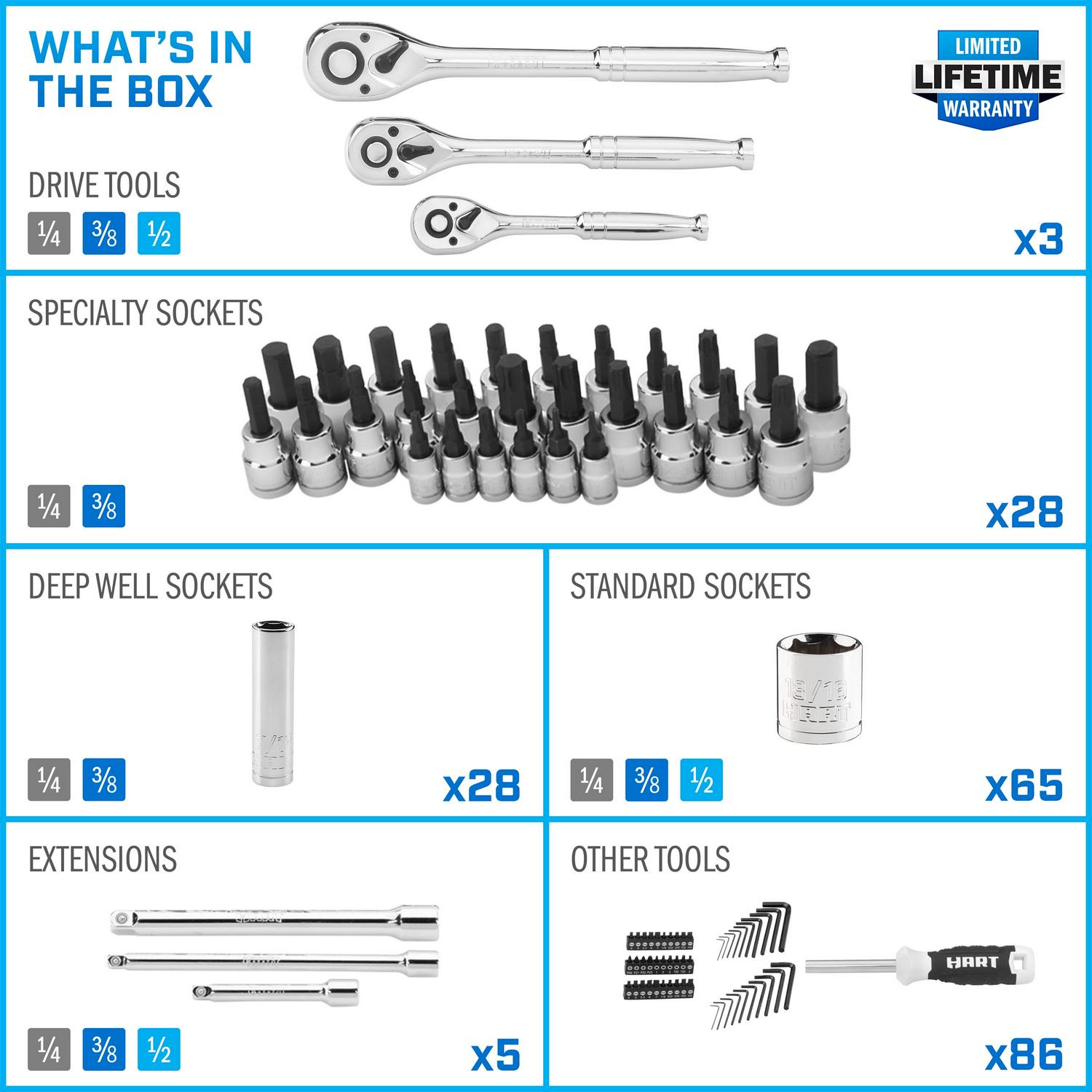 HART 215-Piece Mechanics Tool Set, Multiple Drive, Chrome Finish