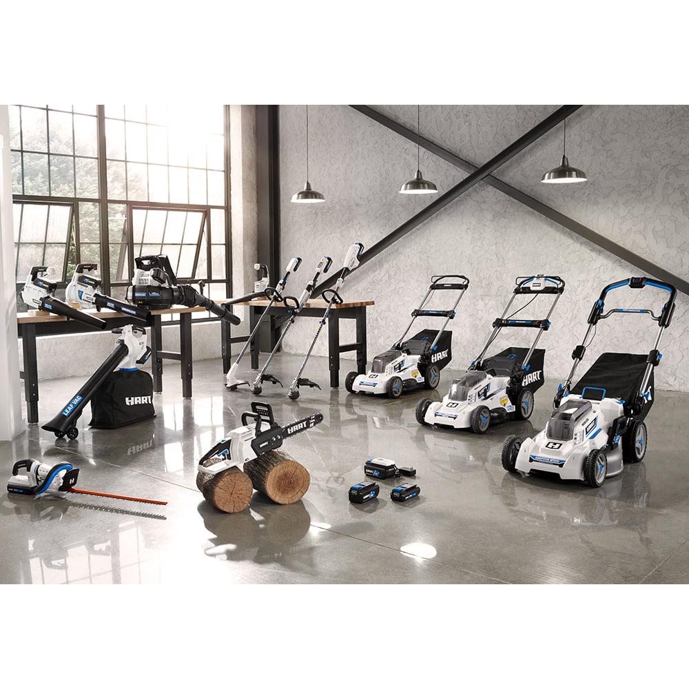 Tackle your yard work with ease. Ideal for medium sized yards, the HART 40V 12-inch String Trimmer gets where your mower can not reach mulch beds, gardens, and fence lines. Featuring an auto-feed head and 10-12-inch cutting swath, the user can easily advance line and choose to have a larger cutting diameter or longer runtime. The variable speed trigger provides the user ultimate control. This string trimmer is lightweight for less user fatigue. For easy trimmer line reloads, remember to grab your HART .080-inch 2-pack spool refill (HAC180RL). All a part of the 40V System where you get ALL POWER, NO GAS. Includes 12-inch String Trimmer, and .080-inch Line. The HART 40V Battery (Not Included) is compatible with all HART 40V tools.