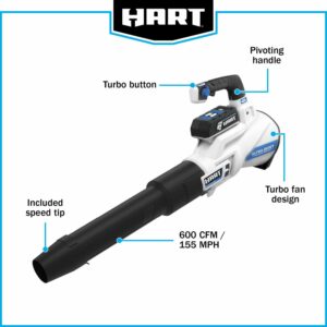 HART 40-Volt 155 MPH at 600 CFM Cordless Brushless Axial Leaf Blower Kit, (1) 4.0Ah Lithium-Ion Battery