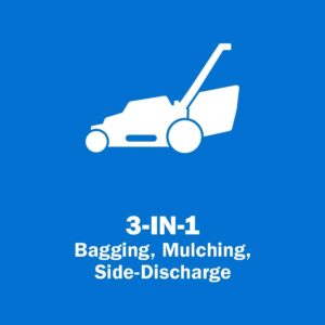 - Easy mowing with 3-in-1 bagging, mulching, side-discharge