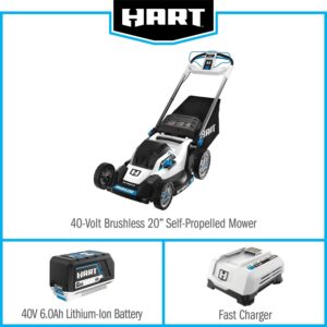HART 40-Volt 20-inch Self-Propelled Battery-Powered Brushless Mower Kit, (1) 6.0Ah Lithium-Ion Battery