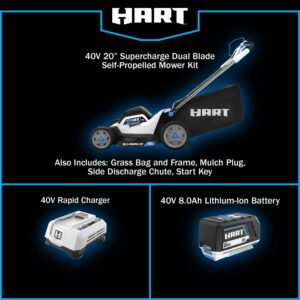 HART 40-Volt 20-inch SUPERCHARGE Dual Blade Self-Propelled Mower Kit, (1) 8.0Ah Lithium-Ion Battery
