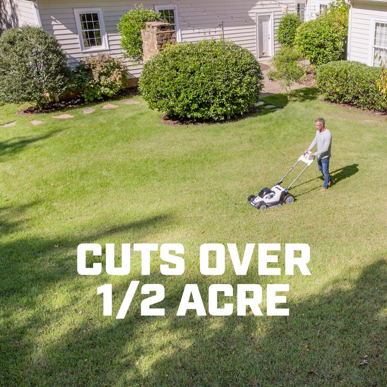 - Cuts over 1/2 acre on single charge