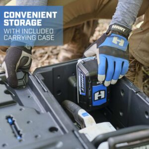 Looking for a best battery powered chainsaw Look no further than the HART 40V SUPERCHARGE 18” Chainsaw. This premium chainsaw is equipped with a brushless motor that outperforms 38 CC gas chainsaws**. And 4X faster cutting*** makes this cordless electric chainsaw perfect for cutting trees, branches and logs. Plus, the brushless motor provides more power, longer runtime, and extended life. Other premium features include an 18″ bar for 32″ cut capacity, adjustable automatic oiler, and chain brake designed for user safety. And with the included rapid charger, you can get a full charge in just 1 hour. The HART 40V Supercharge 18” Chainsaw Kit comes complete with a 6.0Ah battery, charger, and carrying case. Chain length is 45 inches in total. Color is black and white. * *Compared to BlackMax BM3716VNM Gas Chainsaw ** *Compared to brushed model chainsaw HLCS031