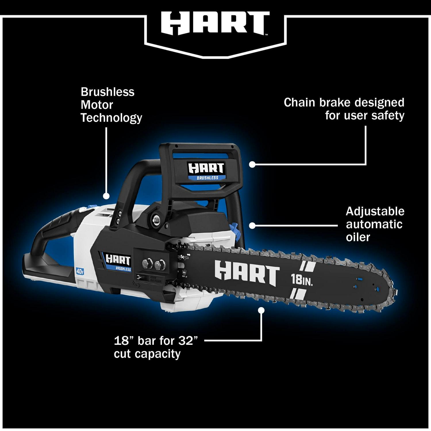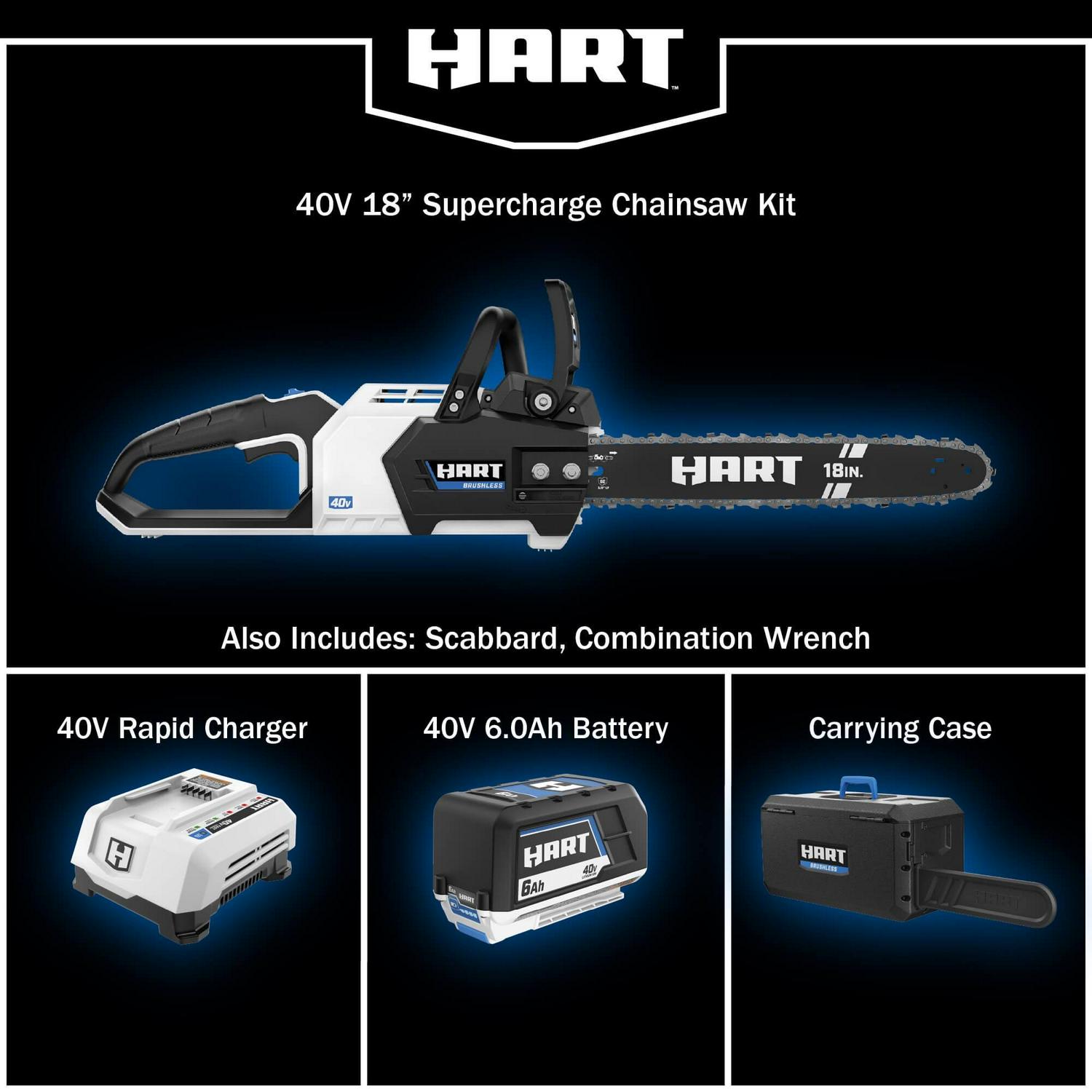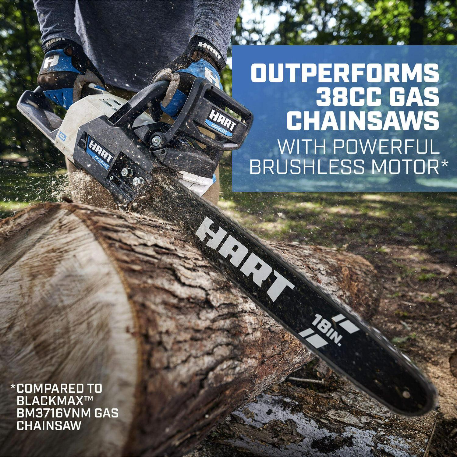 HART Cordless 40-Volt SUPERCHARGE Brushless 18-inch Chainsaw, (1) 6.0Ah Lithium-Ion Battery