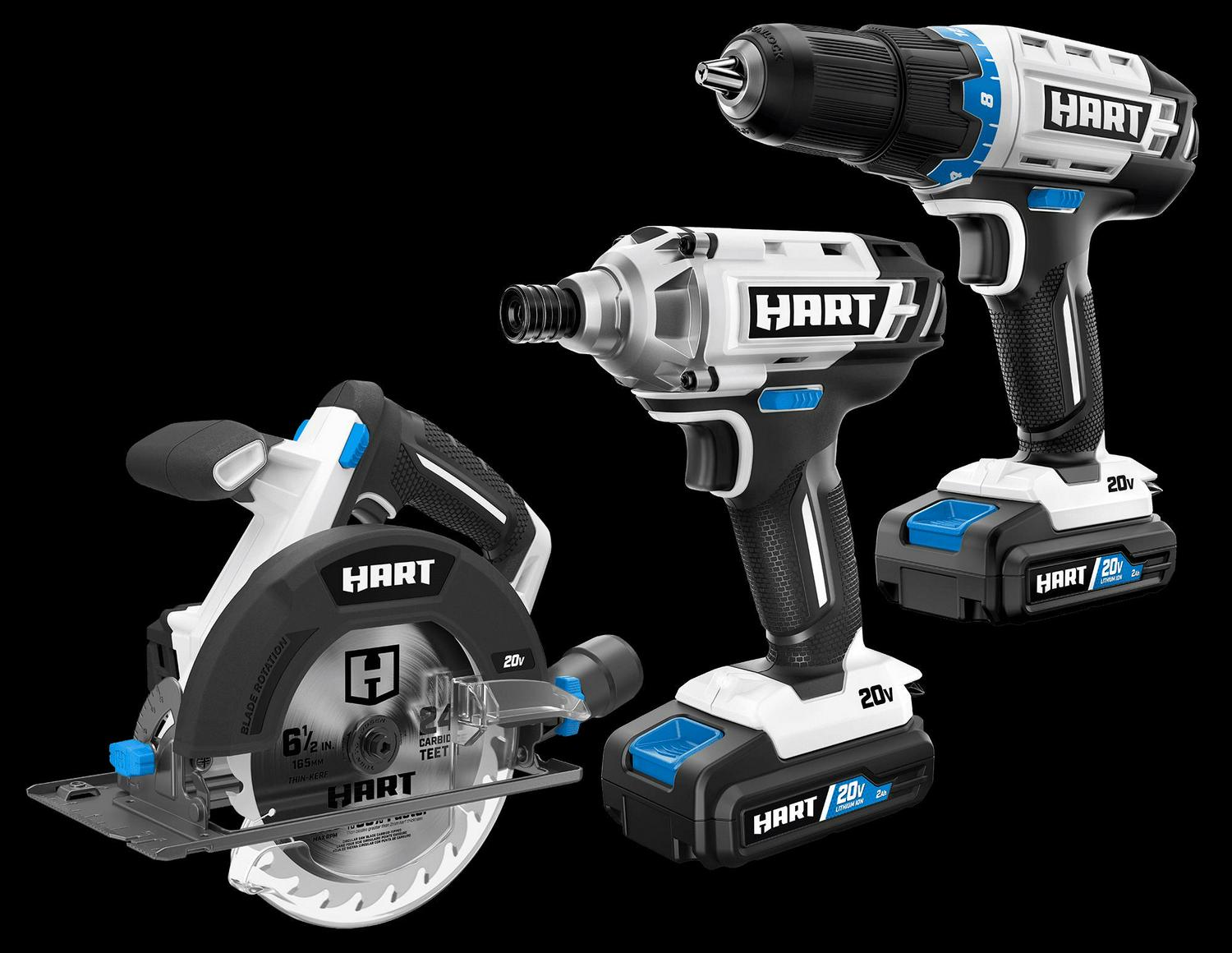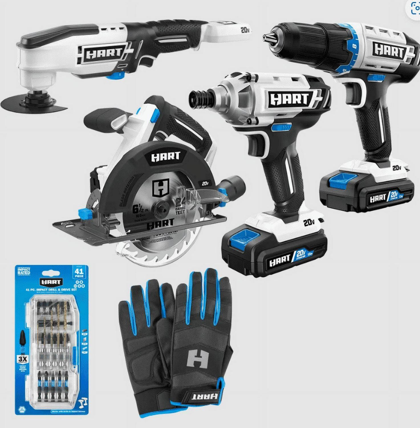 HART Father’s Day Bundle – 20V 3 Tool Combo Kit, Oscillating Multitool w/ Accessories, 41Pc Impact Drill and Drive Set, and Performance Fit (L) Work Gloves (2), 20V 2Ah Lithium-Ion Batteries
