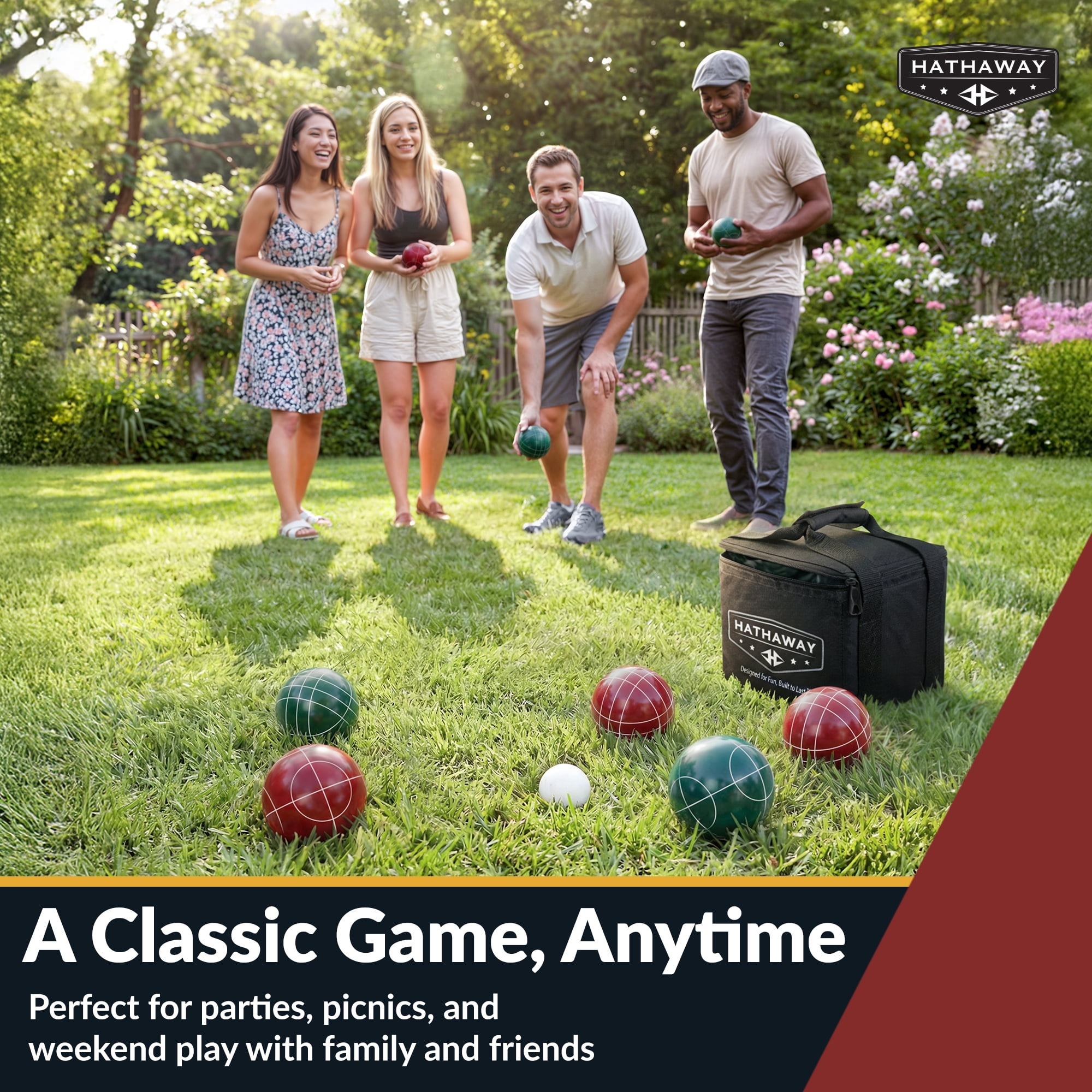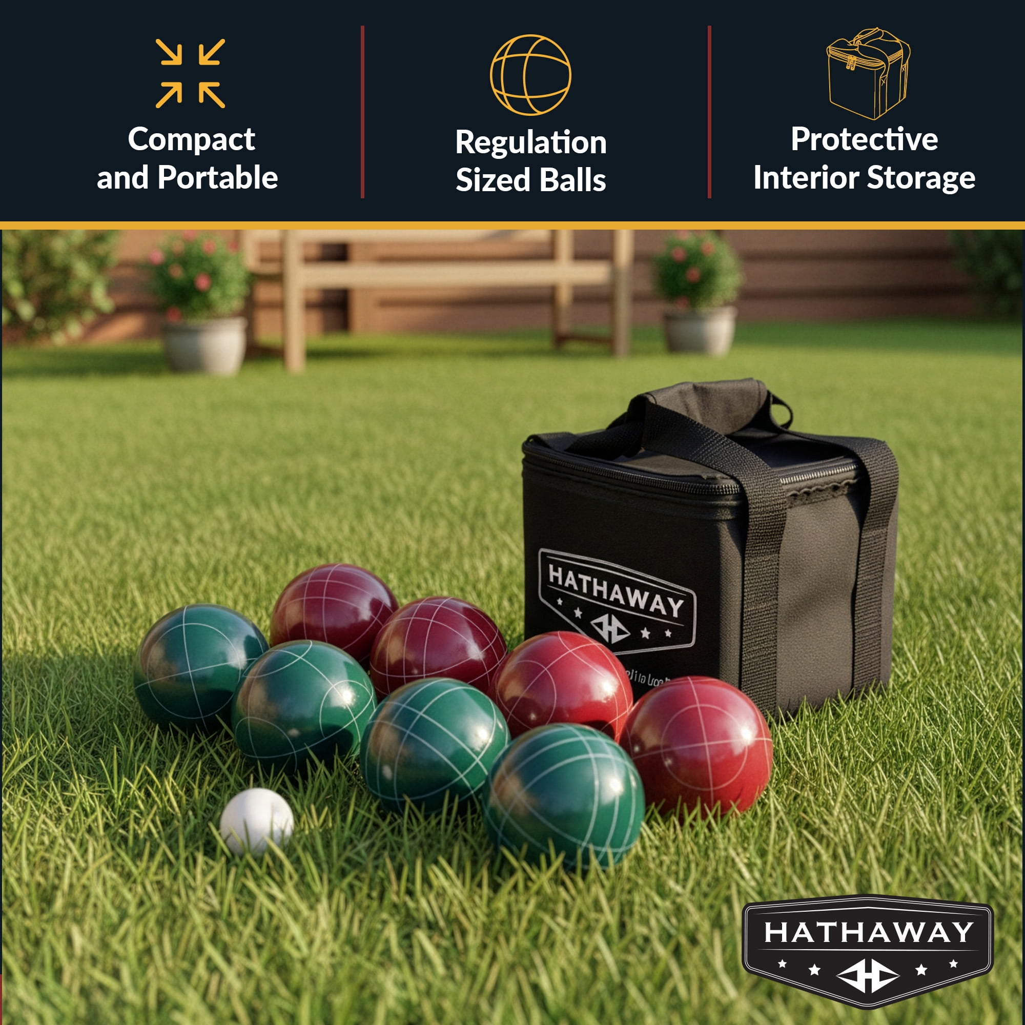 Hathaway Bocce Ball Set w/8 Bocce Balls, 1 Pallino Ball, & Nylon Carry Bag – Green & Red