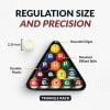16 precision-engineered regulation size 2-1/4-in “True Roll” billiard balls (2) 57-in two-piece cue sticks Aluminum bridge head w/ two-piece bridge stick Ball racking triangle Rail brush 2 pieces of green chalk INCLUDES: