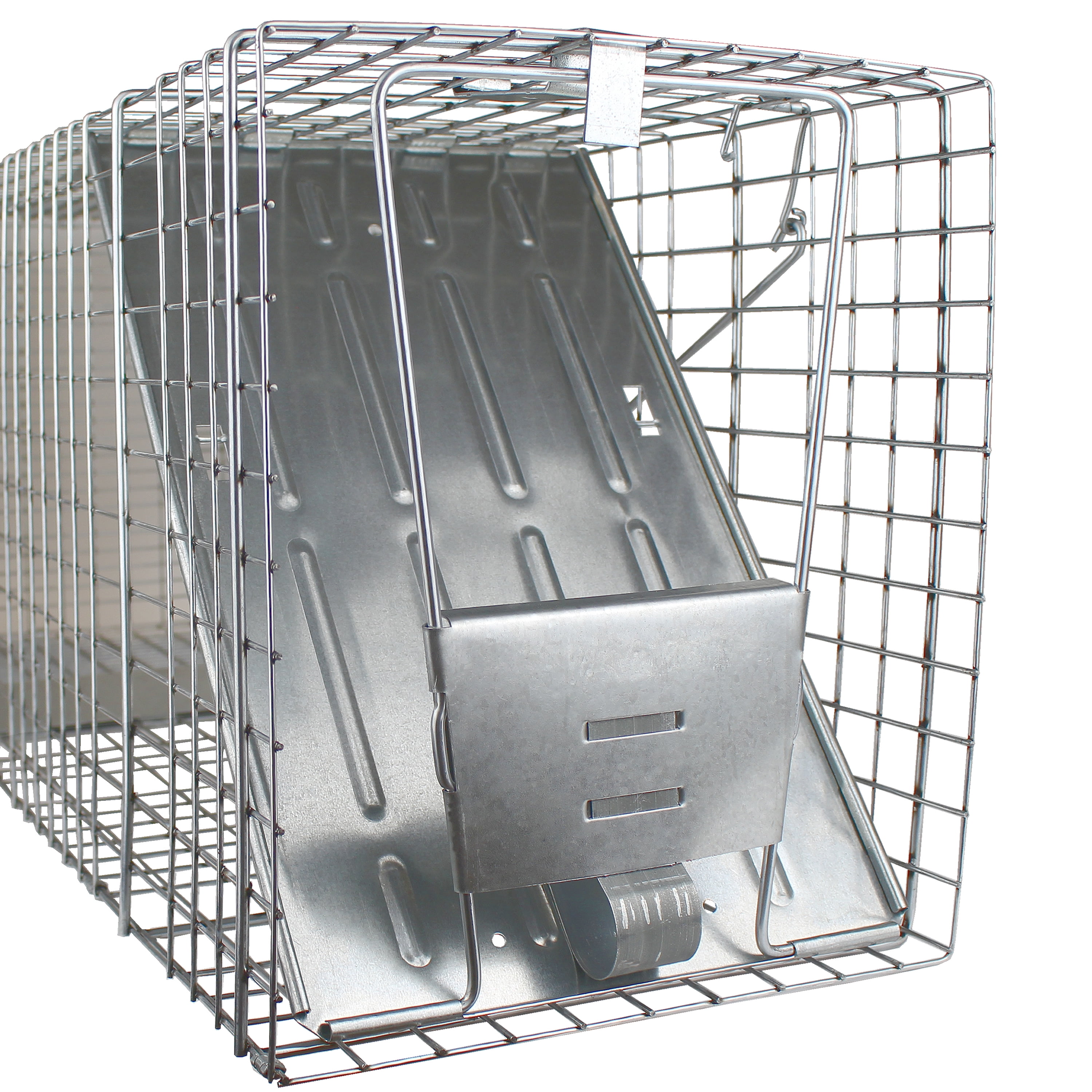 Ideal for humanely capturing raccoons, cats, bobcats, beavers, small dogs, groundhogs, opossums, small foxes, armadillos and similar-size pest animals Spring-loaded solid metal door securely holds animals and prevents escapes Smoothed internal edges prevent inuries to animals Built to last – resists rust and corrosion Comes fully assembed and ready to use Dimensions: 31.98 in x 10.6 in x 12.14 in