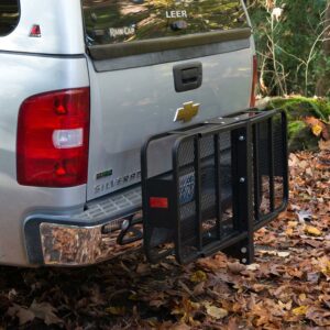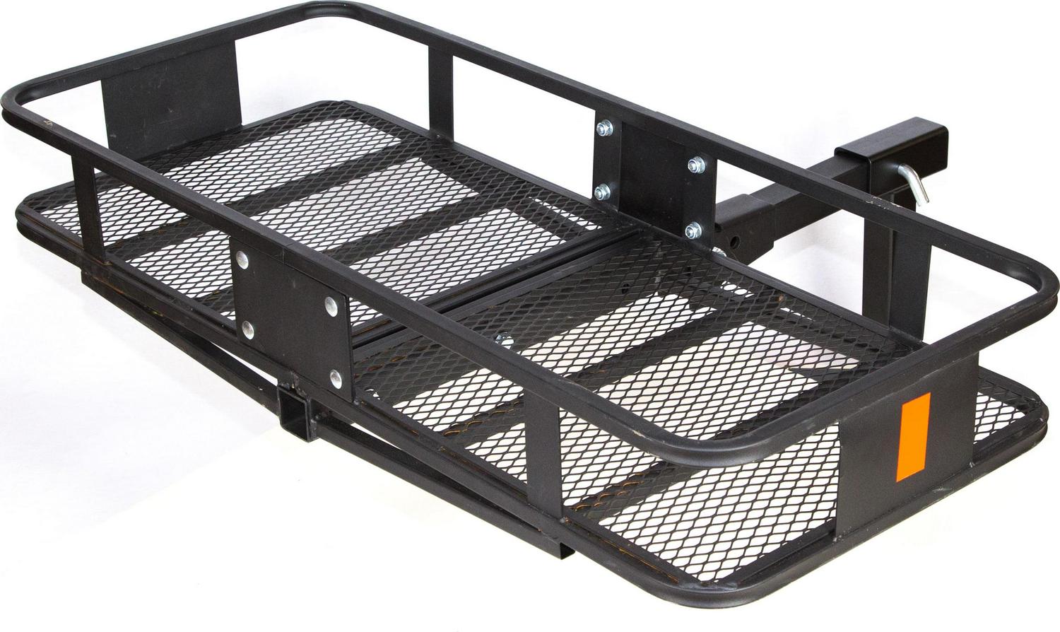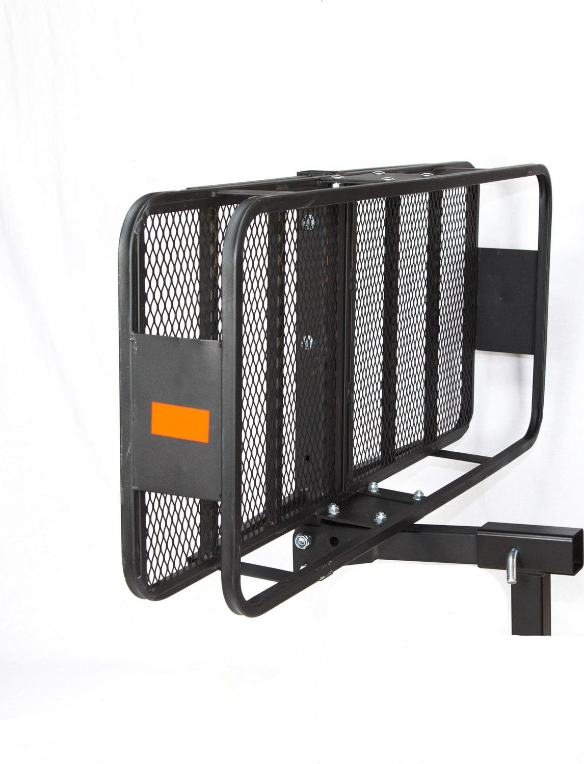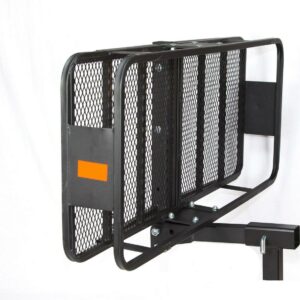 The Heininger Deluxe Folding Cargo Carrier offers added storage area for luggage, coolers and outdoor equipment to keep your vehicle free of clutter. When not in use, the hitch mounted cargo carrier easily folds up and out of the way. Multiple tie-down points are located on the cargo carrier to secure your gear.