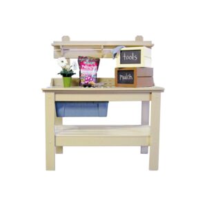 Perfect for all of your gardening projects, this potting table has generous tabletop space, and you can store your tools and other necessities on the bottom shelf. The included 14-gallon heavy-duty removable tote is ideal for storing potting soil or any other gardening gear. With stainless steel fasteners that won’t rust, this table will endure the elements. Minimal assembly is required, then it’s time to enjoy your handiwork.