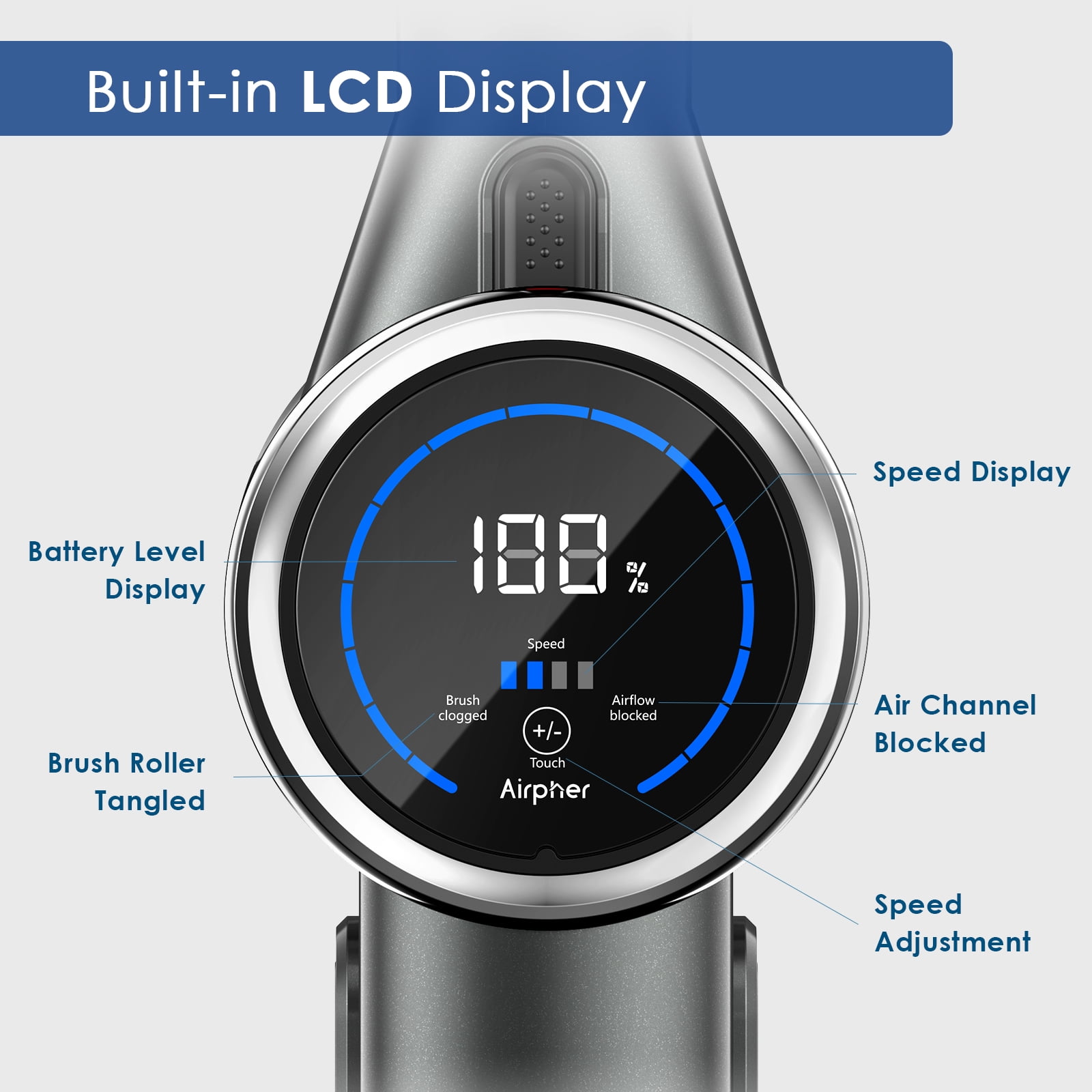 Airpher 3-in-1 Cordless Vacuum Cleaner with LED Display, Lightweight Vacuum Cleaner for Pet Hair Carpet Hard Floor
