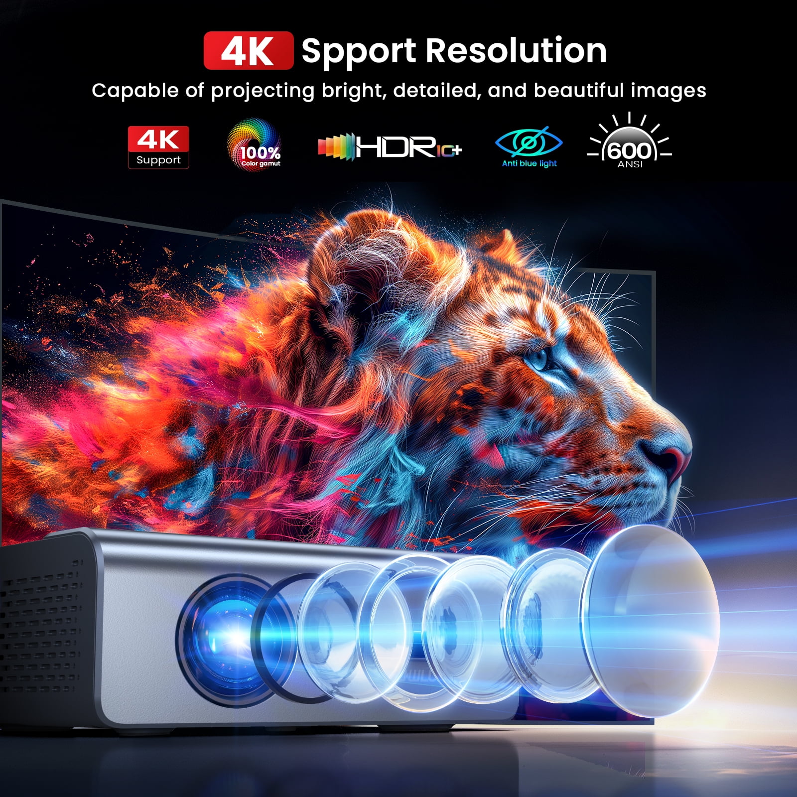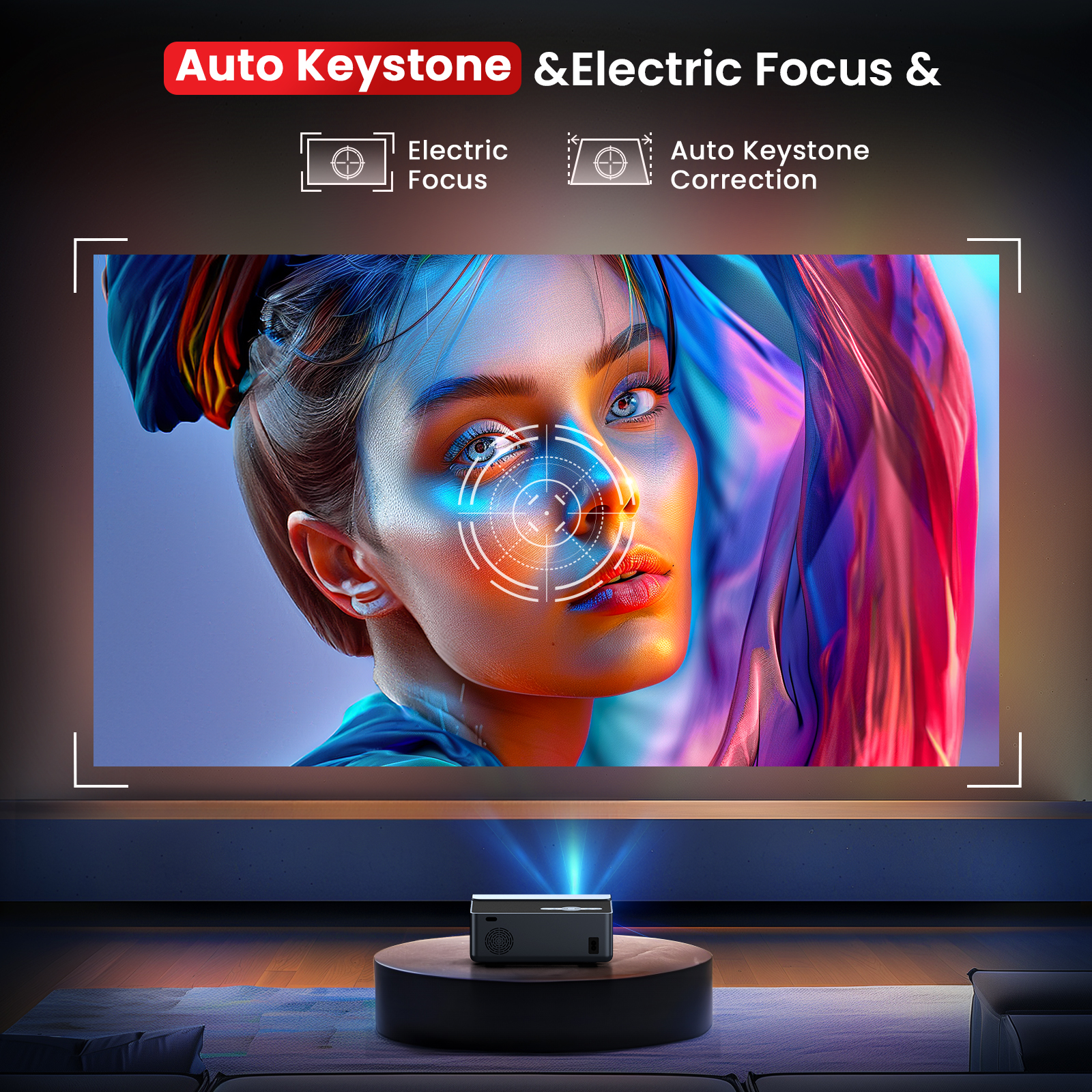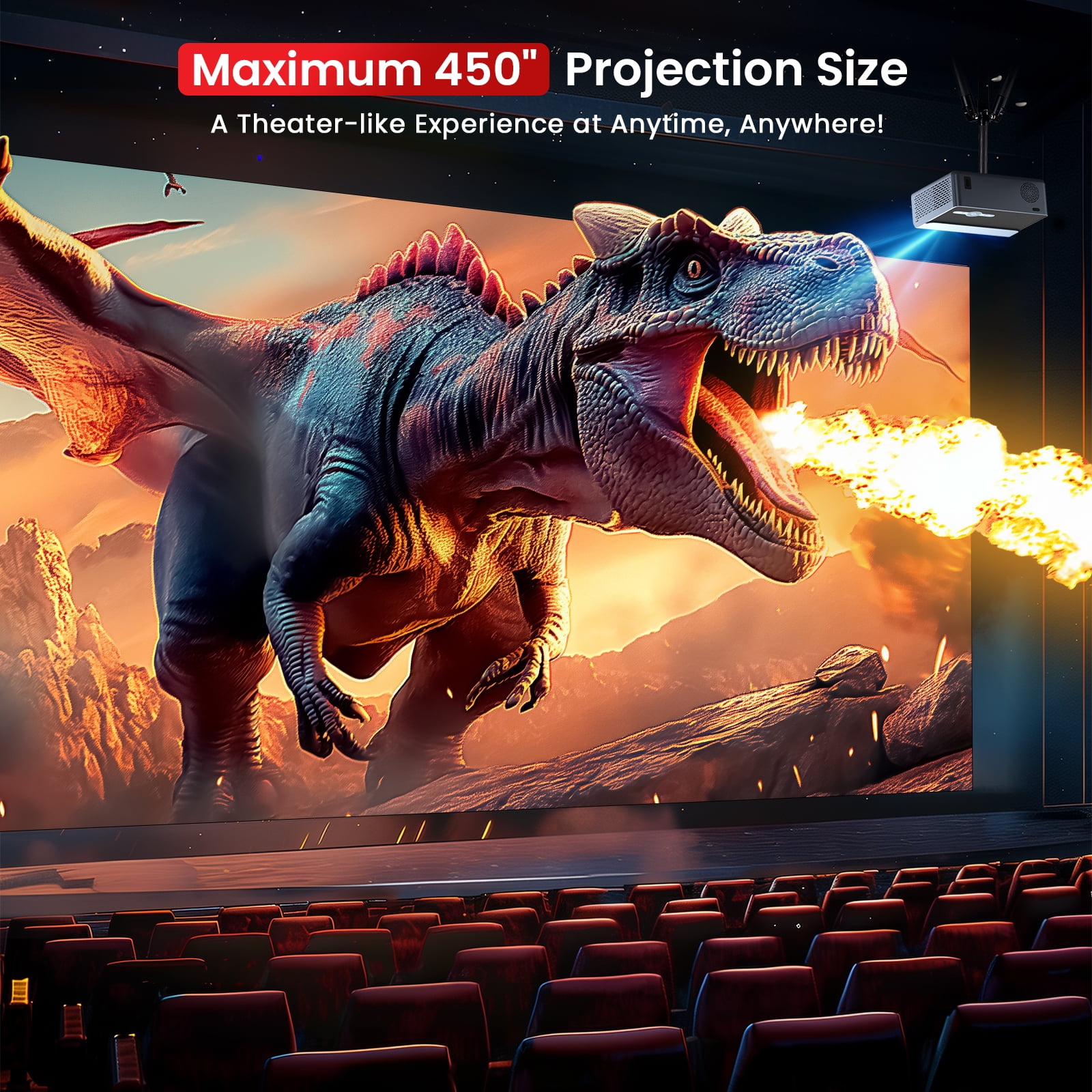 This state-of-the-art Bluetooth projector is designed to elevate your viewing experience with cutting-edge WiFi 6 and Bluetooth 5.3 technologies for fast and stable wireless connections. This Bluetooth projector features electric focus and auto keystone correction, making achieving sharp, clear images from any angle effortless. Its seamless compatibility with smartphones, tablets, and laptops transforms it into a versatile audio-visual solution suitable for any occasion. Experience stunning visuals on screens up to 450 inches, perfect for home theaters, business meetings, or any event that demands a large display. Upgrade your presentations and entertainment with our exceptional Bluetooth projector today!