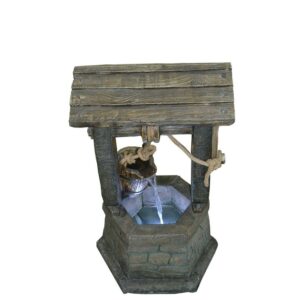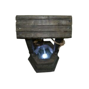 Hi-Line Gift Ltd Fountain- Wishing Well with Pouring Bucket and LED Light