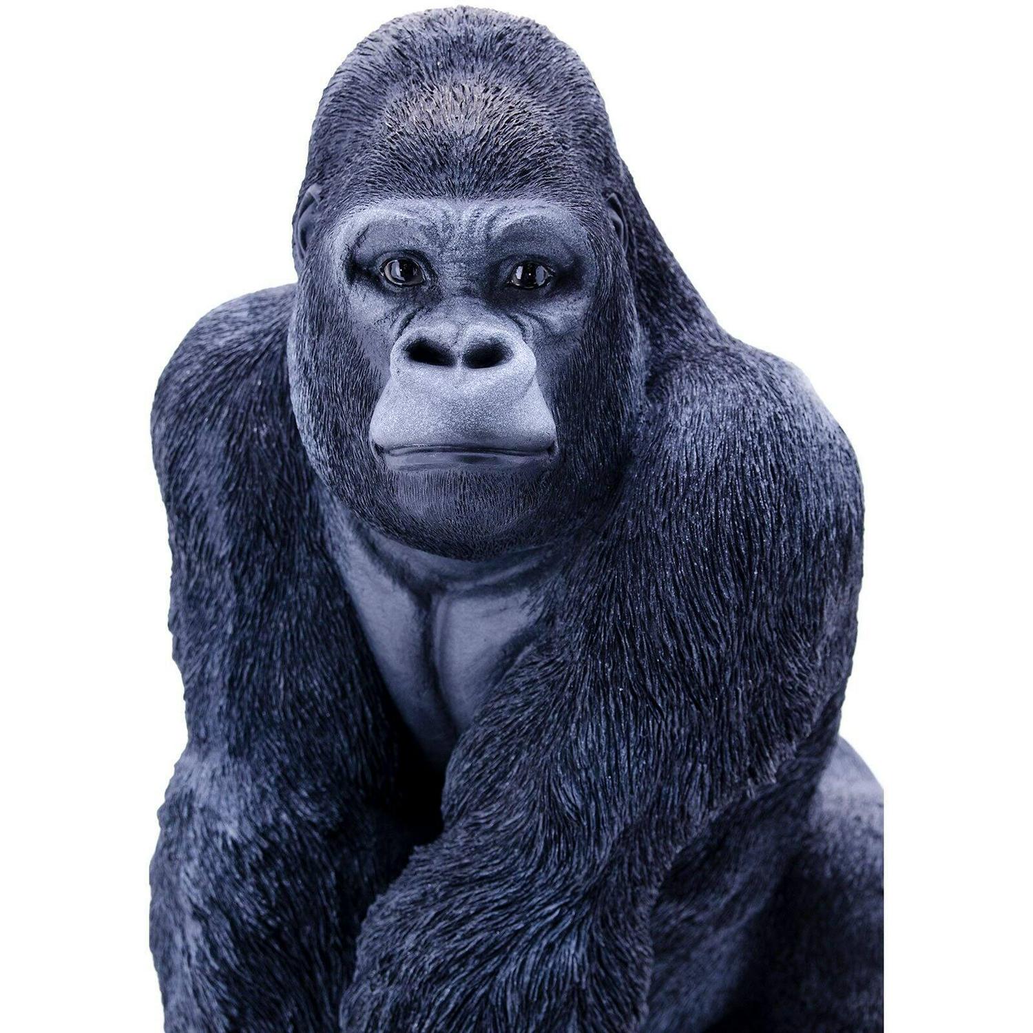 This magnificent adult gorilla, is seated and curiously leaning forward. He is powerful without being imposing. A marvelous piece for the person who loves the call of the wild. This statue will astonish you with its strikingly life-like design.