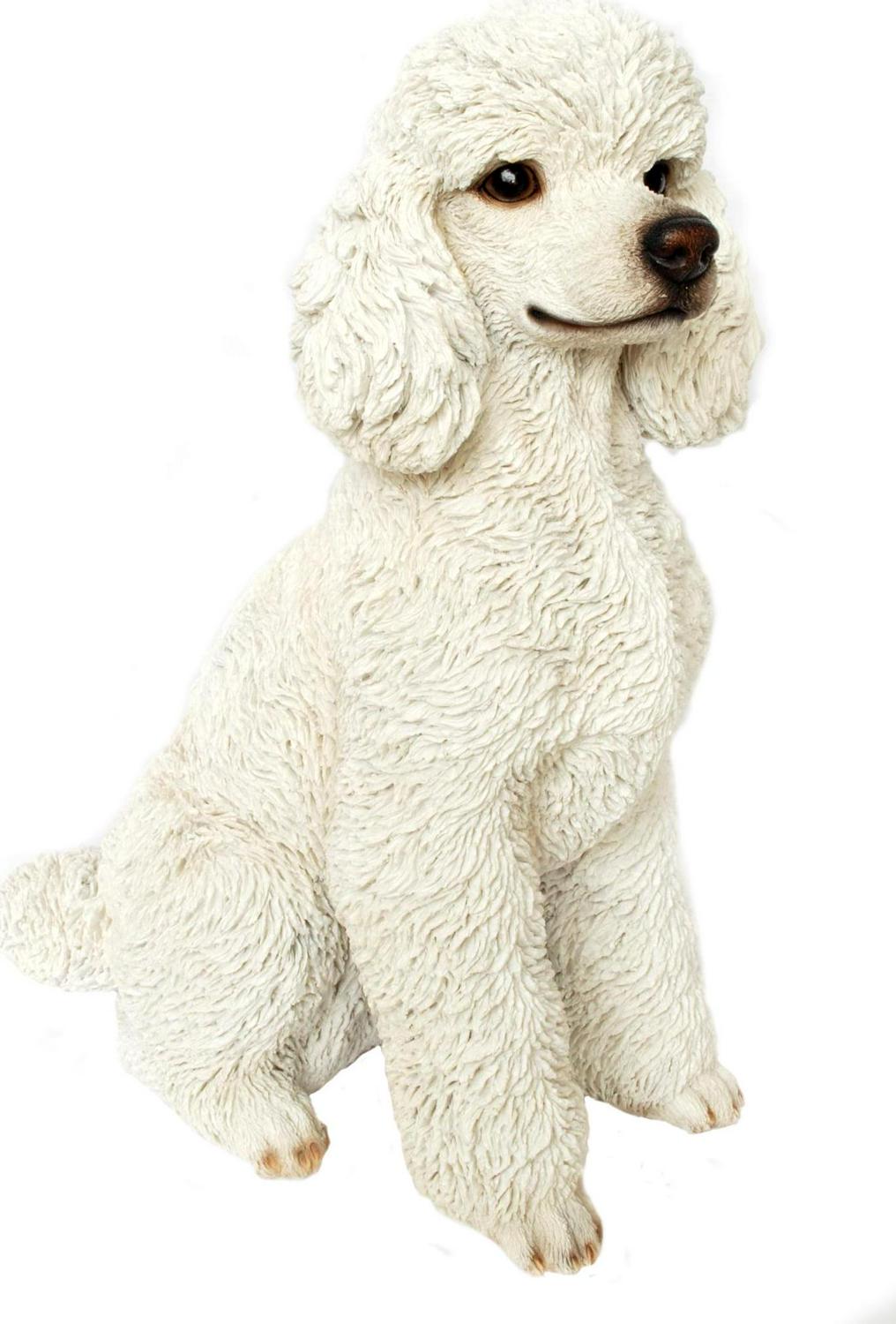 This sitting poodle has been created with true to life detail. It has a beautiful white coat with glossy black eyes. Made with durable poly-resin.
