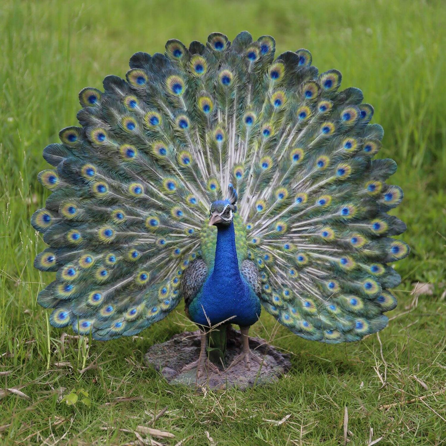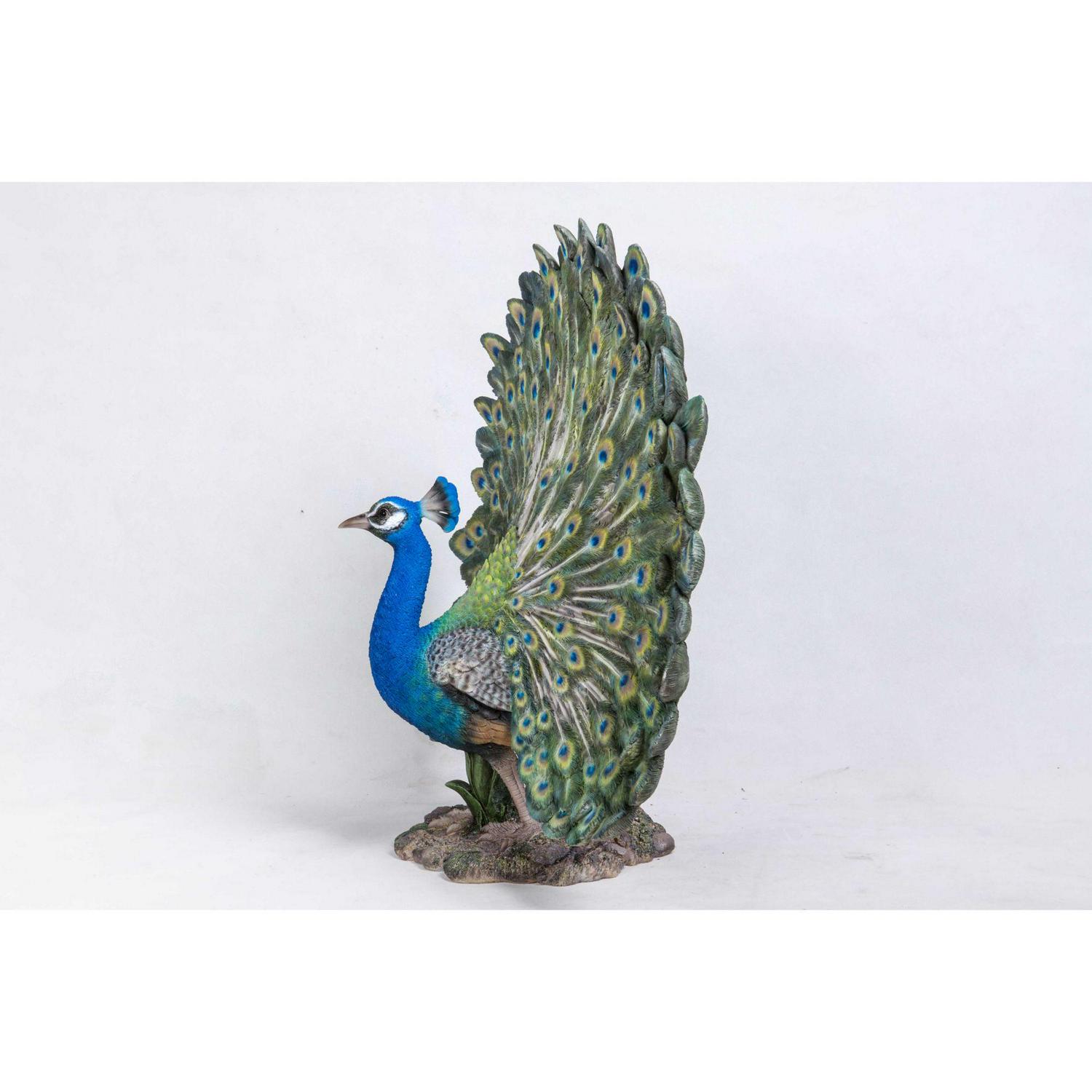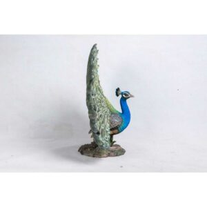 Peacock with feathers out statue is a magnificent life like replica of the national bird of India – Peacock, known for their dance in monsoon by spreading out their magnificent feathers. Made with polyresin, this statue is good for both indoors and outdoors. This statue will astonish you with its strikingly life-like design.