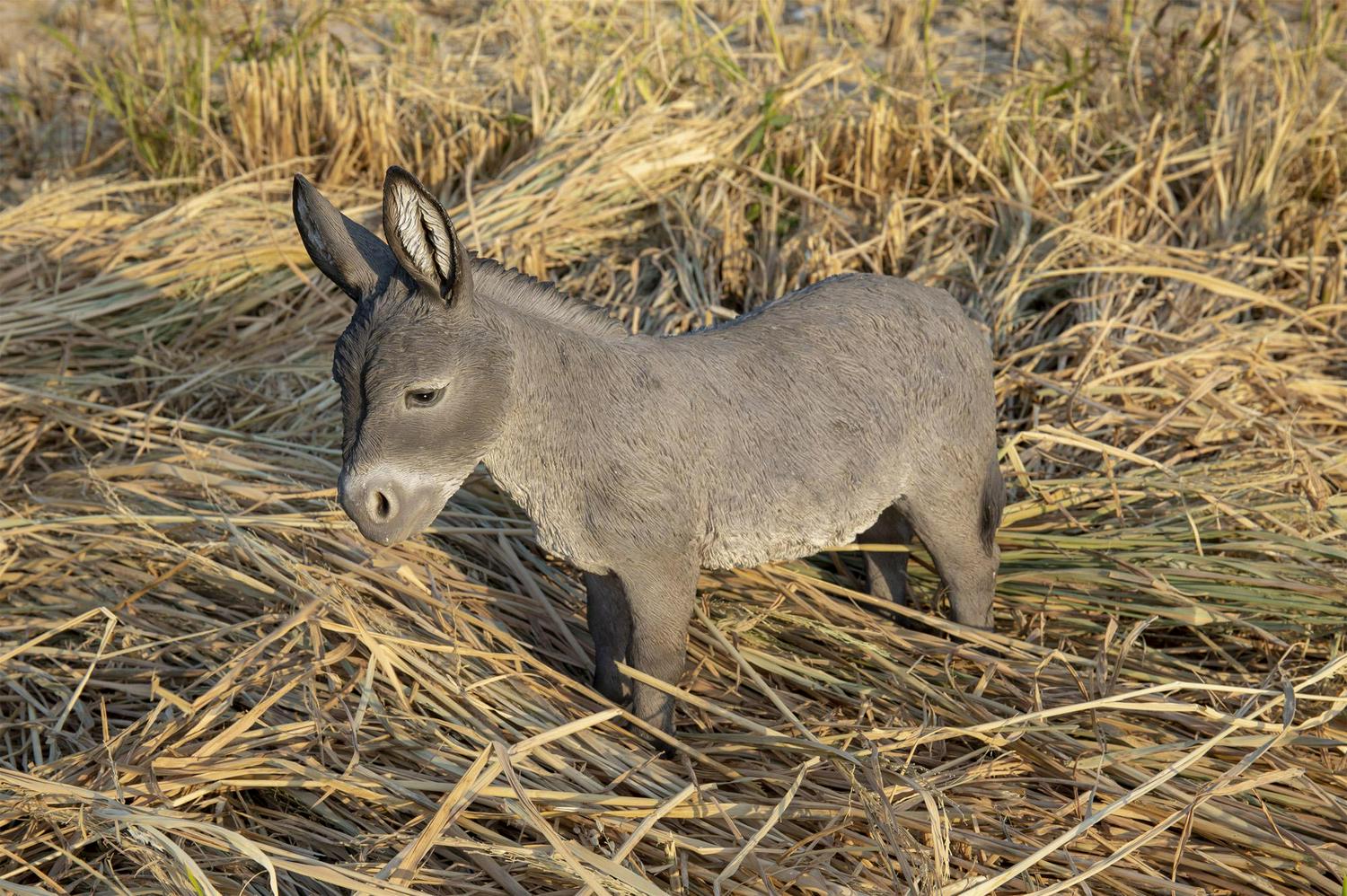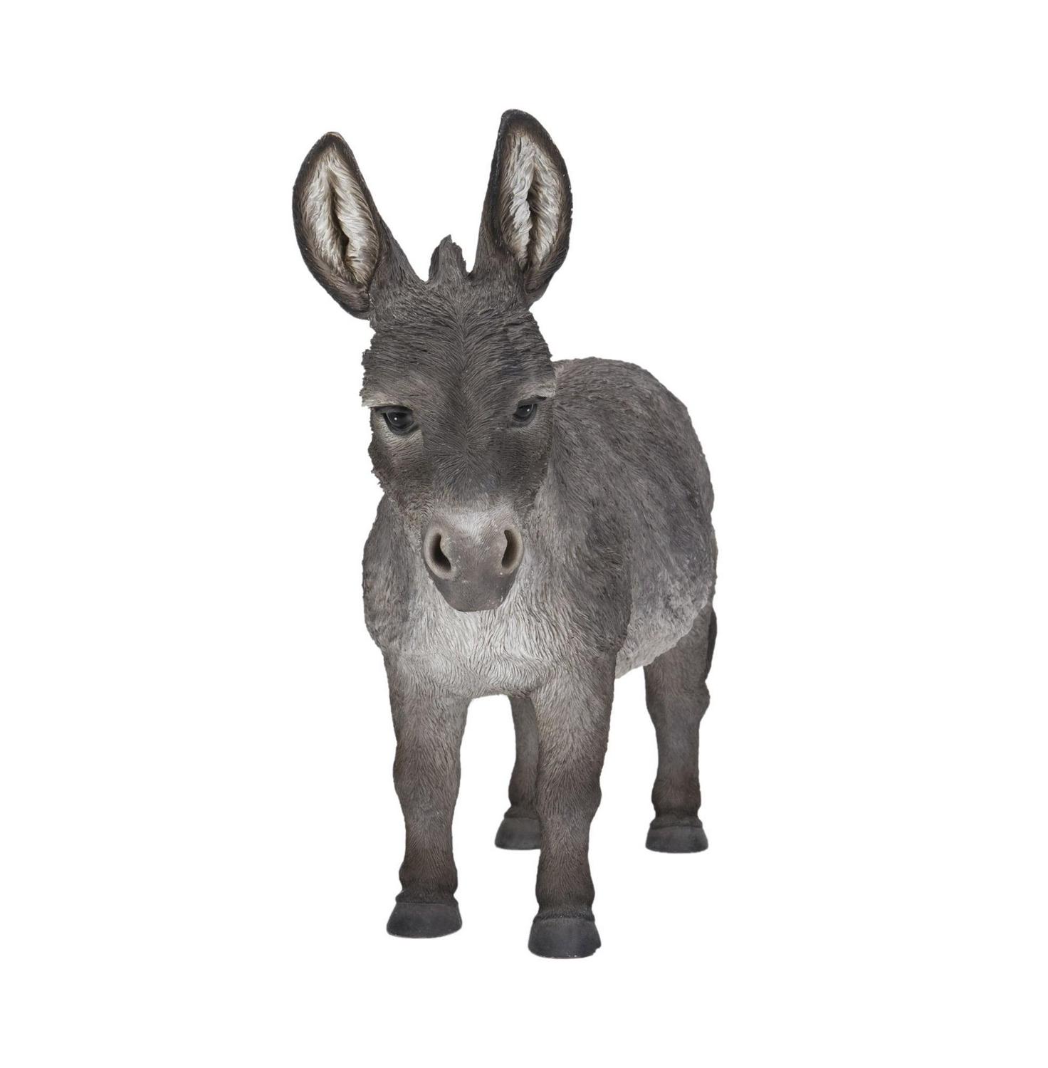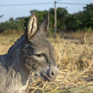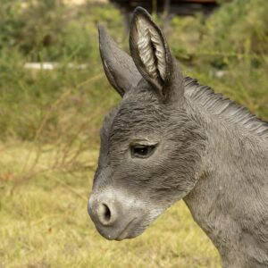 Elevate your space with this lifelike baby donkey foal statue. Exquisite realistic detailing and hues of grey bring this sculpture to life. A captivating addition to your home and garden decor, radiating positive vibes. Perfect for gifting or enhancing your own surroundings with charm. Product Features: Lifelike baby donkey statue. Donkey in the standing pose. Finished in realistic shades of grey. Perfect for your living room or garden decor. Recommended for indoor and outdoor use. Dimensions: 18.5″H x 15″W x 6″D. Material(s): resin